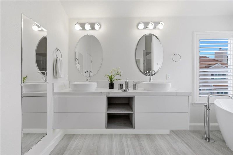 - Double Sinks, Primary - Stall Shower(s), Tub in Primary Bedroom, Updated Bath