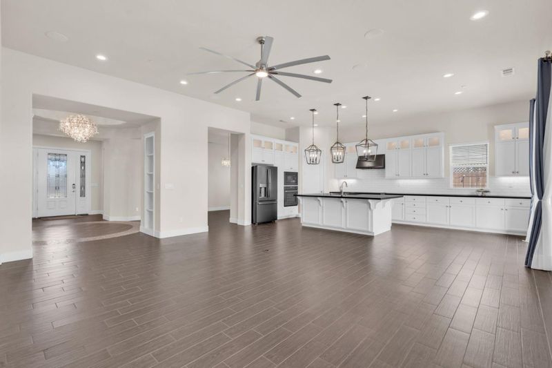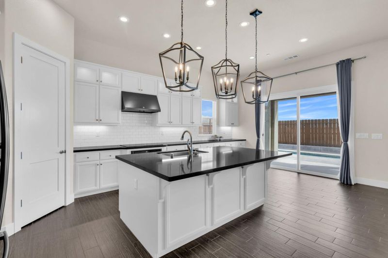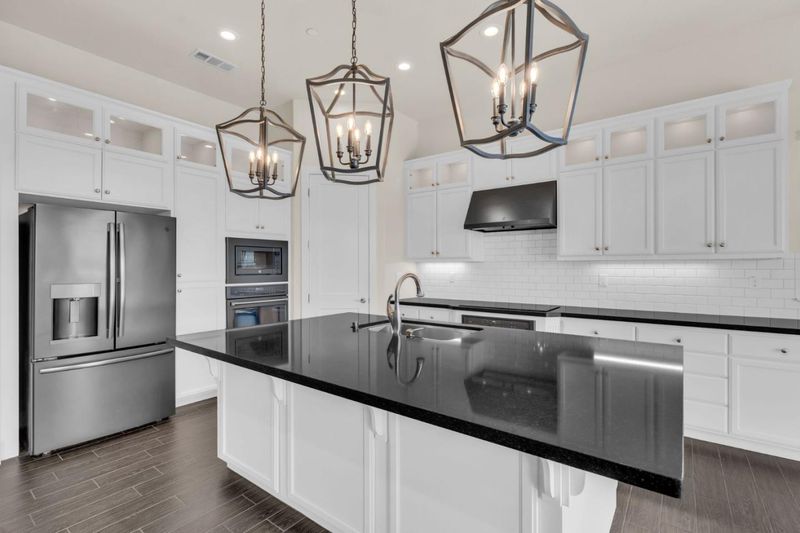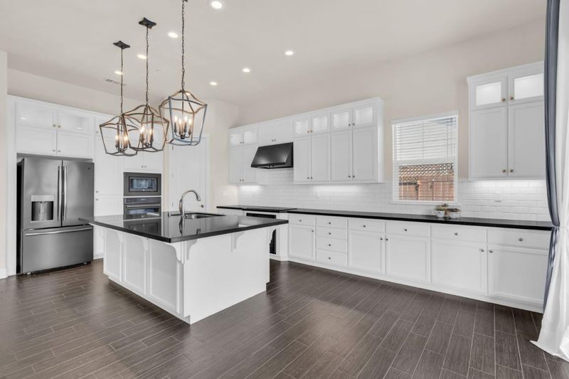 - Cooktop - Electric, Countertop - Granite, Countertop - Stone, Dishwasher, Hood Over Range, Hookups - Ice Maker, Island with Sink, Microwave, Oven - Double, Oven - Electric, Pantry, Refrigerator
