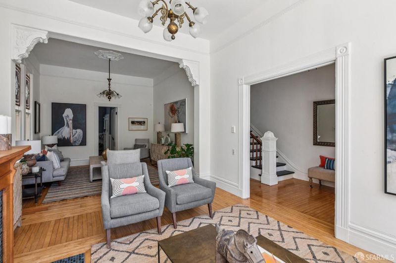 Welcome to the Joice House, a grand, Queen Anne Style Victorian situated just steps to Alamo Square Park. Designed by architect Adolph C Lutgens, this impressive property provides 3 floors of expansive living space. Consisting of a two story single family home + legal attic apartment, 982-984 Hayes is a rare offering of over 3000 sq feet of living space in one of SF's most storied neighborhoods. Entering through a lovely portico and set of double doors, you're immediately greeted by high ceilings & a striking staircase. The first floor consists of an impressive double parlor + dining room, kitchen with French doors leading to a deck + mature garden, powder room, two decorative fireplaces, high ceilings, hardwood floors, & lovely period detail. The second floor boasts 4 bedrooms, including a breathtaking primary bedroom spanning the width of the house, with decorative fireplace, bay windows & two closets. There's also a full bath on this level. The top floor is a full floor, 1BD/1BA attic apartment with its own independent access. The apartment could be reconnected to the main house via an existing, closed off internal staircase. There are views of the Marin Headlands, Golden Gate Bridge & partial downtown views from the upper level. All levels are connected via a substantial exterior staircase, including decks for each floor. All levels overlook a mature, landscaped garden featuring a slate patio. The overly large garage has high ceilings & spans the full length of the property, offering potential future development. It currently accommodates 3 cars. The property is bookended by two distinct destinations: the Divisadero corridor 3 blocks to the West, with the shops & services of Hayes Valley 3 blocks to the East. And Alamo Square lies steps outside your front door-a truly rare & special property.
