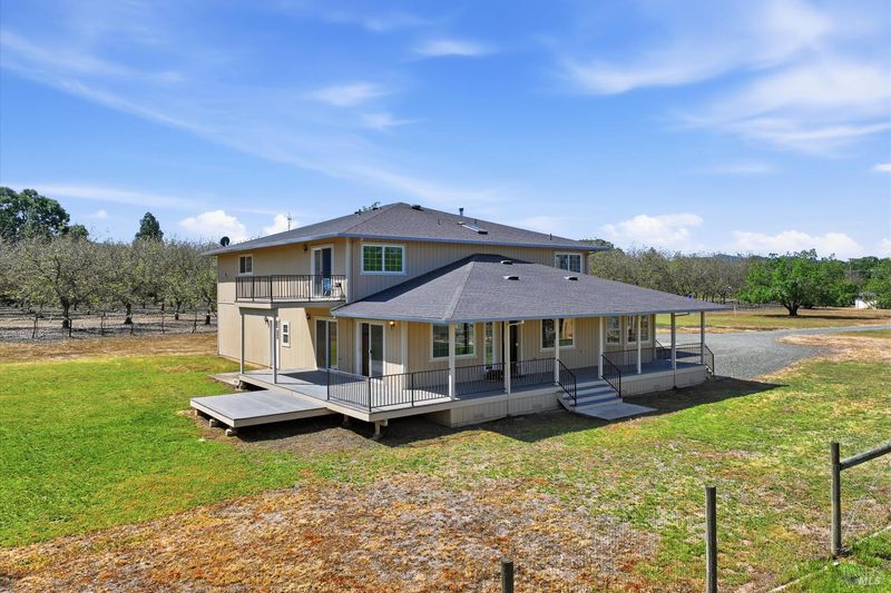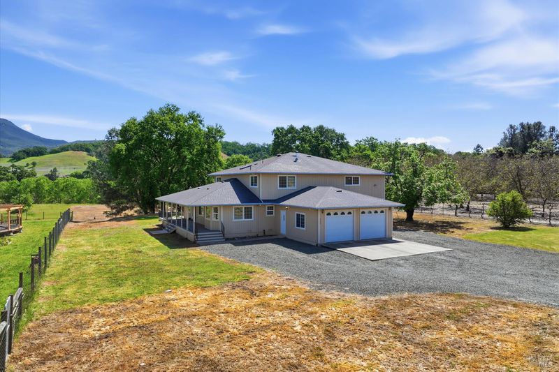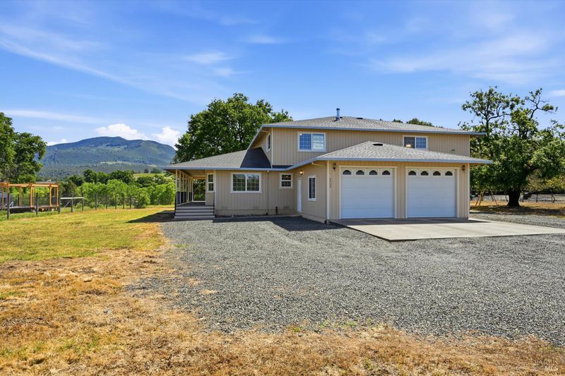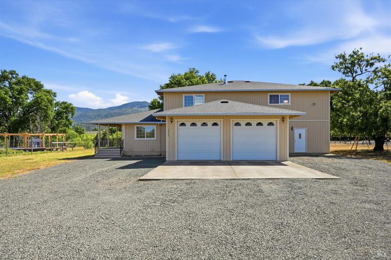 Highly sought after KELSEY CREEKFRONT acreage including a two-story custom built home plus attached half court gymnasium. Available for the first time ever, this well-loved property spans just over 3 acres of usable agricultural land with approximately 161 ft of serene creek frontage. Zoned for agriculture, this is an ideal opportunity to create your dream hobby farm, cultivate a thriving garden, or enjoy peaceful country living with room for livestock. A charming wrap-around porch welcomes you, and an upper balcony overlooks your back yard and surrounding beauty. The main level showcases beautiful original red oak flooring throughout the living room, dining room and kitchen. A convenient in-law floor plan includes a bedroom and full bathroom. Upstairs you'll find the other 2 bedrooms, an office overlooking the gymnasium, and another full bathroom with plenty of natural light from the skylight. Enjoy the privacy of your own half-court, practicing pickle ball or playing basketball upon maple flooring. An additional storage closet and 3/4 bathroom with a walk-in shower complete the space. Take a short hike down to the creek where you can take a dip to cool off on hot Summer days or simply admire the beautiful surroundings and wildlife. This one-of-a-kind property delivers the perfect balance of rural charm, recreational activities, and peaceful living. Schedule your tour today before this rare opportunity is gone in one of the most desirable areas of Lake County.