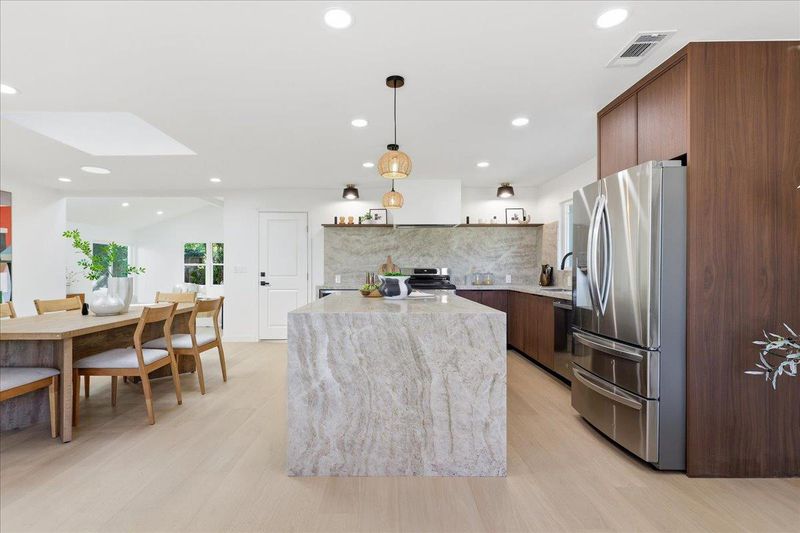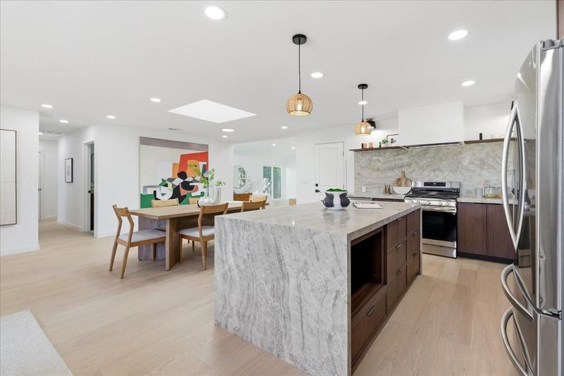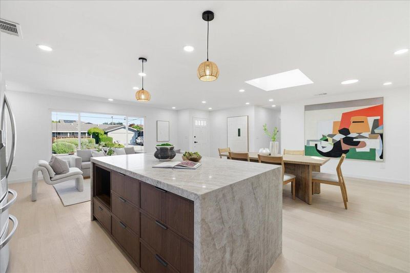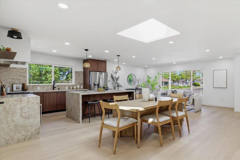 423 sq ft New family room with vaulted ceiling and whole house remodel with permit. Whole-house rewiring, Water pipes upgraded to copper, Sewer pipe upgraded to ABS. New 100 amp subpanel. Showcasing high-quality finishes throughout. Modern walnut cabinetry, Taj Mahal quartzite countertops, huge waterfall island, and engineered oak wood flooring throughout the house. Open layouts, 5 skylights with remote, lots of windows. Natural light flows into the house. East-facing Front Door. Ideally situated in a quiet, central location within the community and served by the top-rated Schools: Nelson S. Dilworth Elementary School, Joaquin Miller Middle School, and Lynbrook High School. Easy access to park, library, local restaurants, supermarket, highway, and high-tech companies.