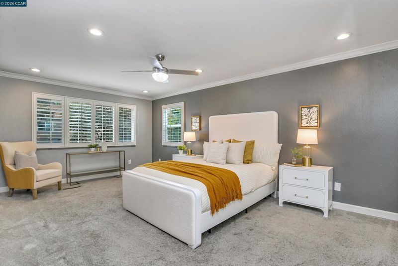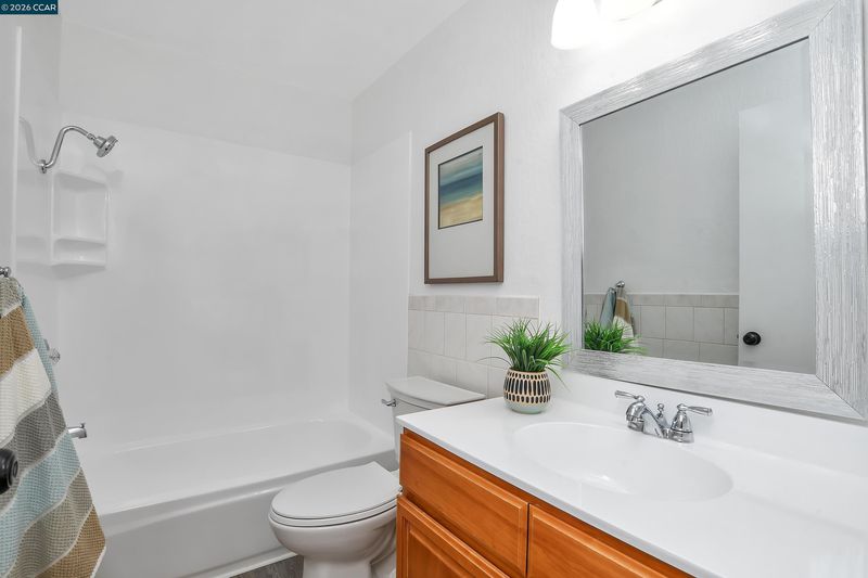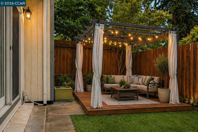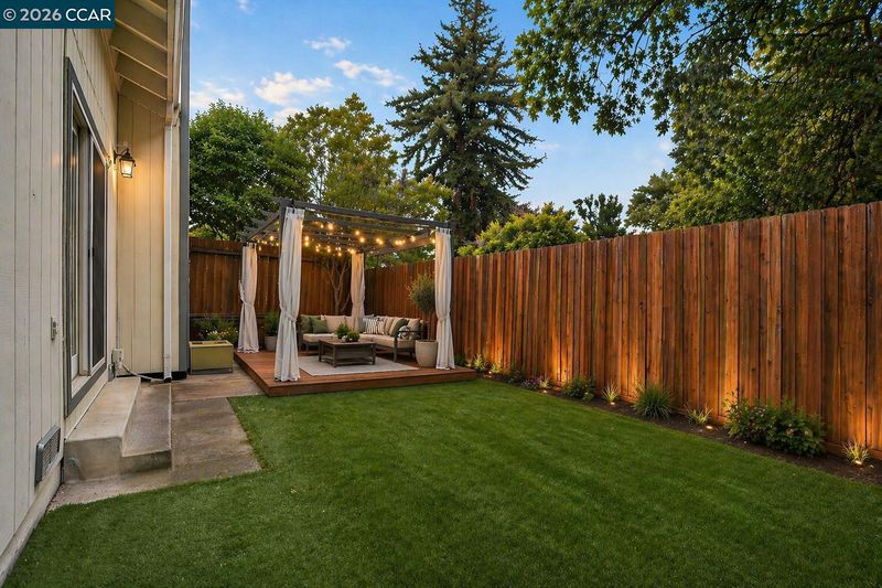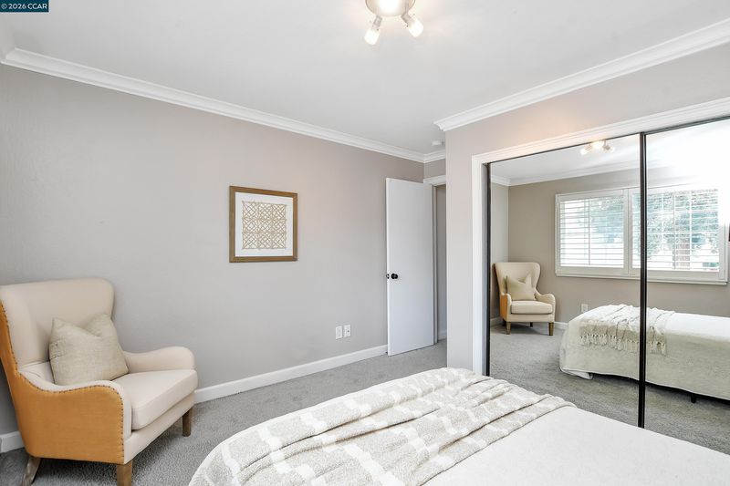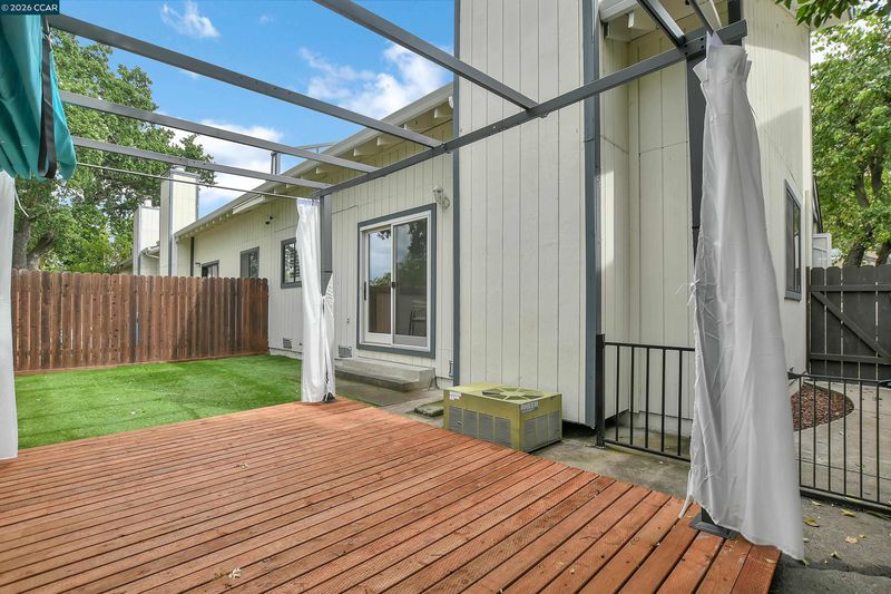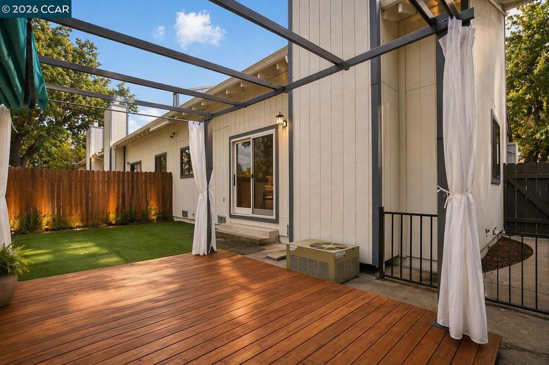 Rarely available, beautifully updated townhome with a 2-car garage! Highly desirable corner unit in a peaceful, tree-lined community filled with natural light. Freshly painted inside and out, this home offers both style and comfort. The spacious living room features vaulted ceilings, wood laminate flooring, and an updated electric fireplace with a built-in entertainment center. The modern kitchen includes granite countertops and newer stainless steel appliances. The oversized primary bedroom showcases crown molding and a custom built-in closet system. Additional upgrades include dual-pane windows and patio doors, along with elegant white plantation shutters throughout. Enjoy seamless indoor-outdoor living with a large living area that opens to a private fenced backyard perfect for relaxing or entertaining. Both front and back yards feature low-maintenance artificial turf for water conservation. Ideally located near downtown Concord with quick access to freeways and BART. Low HOA dues. Move-in ready!