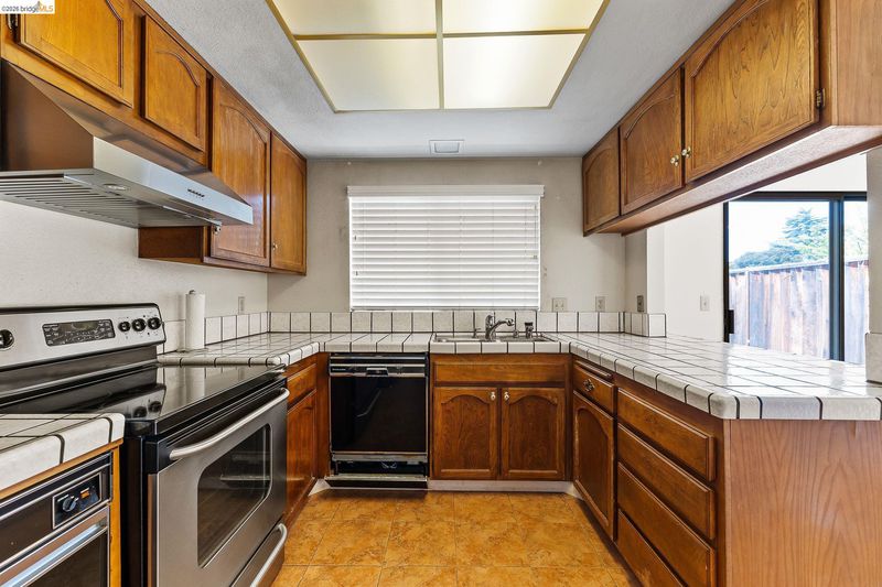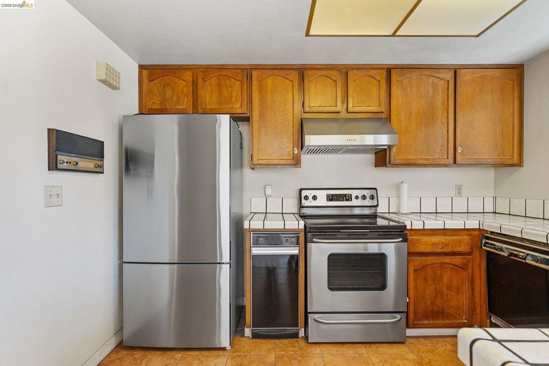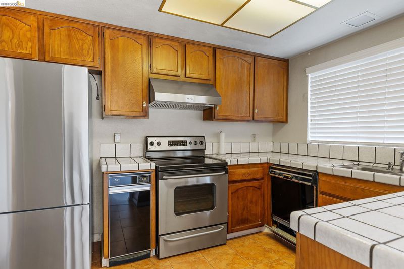 - Dishwasher, Electric Range, Refrigerator, Trash Compactor, Dryer, Washer, Tile Counters, Electric Range/Cooktop, Disposal