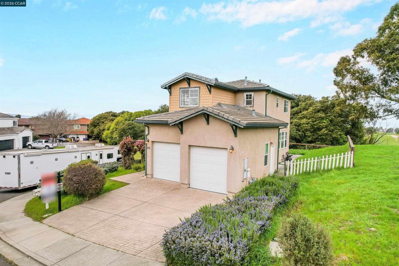 Located in the desirable city of Pinole along the El Sobrante border, this beautifully built two-story corner home blends contemporary interior design with a peaceful rural setting. Situated on a spacious 12,750 square foot lot, the home offers 1,949 square feet of thoughtfully designed living space, featuring 3 bedrooms and 2.5 bathrooms. The modern interior showcases clean lines, open living areas, and abundant natural light throughout. The fully applianced kitchen includes all major appliances — even the washer and dryer — making this home truly move-in ready. Upstairs, the generous primary suite serves as a private retreat, complete with a luxurious soaking tub, perfect for unwinding at the end of the day. Large windows throughout capture great vistas of the surrounding open landscape, enhancing the tranquil and scenic atmosphere. Additional highlights include a 2-car attached garage with independent roll-up doors, offering convenience and functionality. Enjoy contemporary comfort paired with open rural charm, where deer and local wildlife roam freely — all while remaining close to shopping, dining, and commuter access.