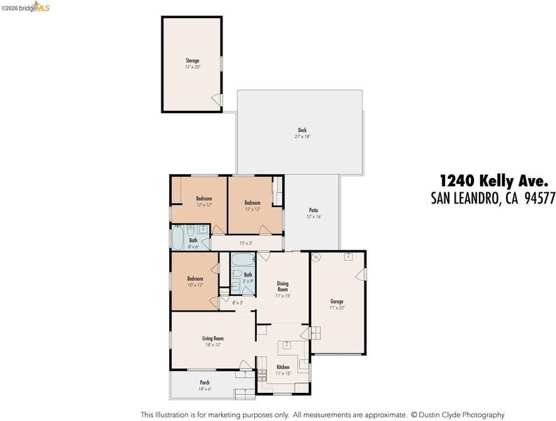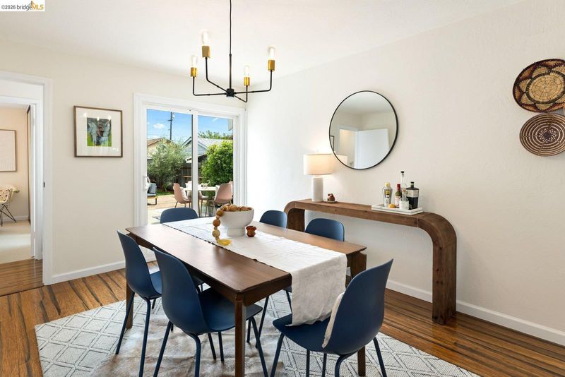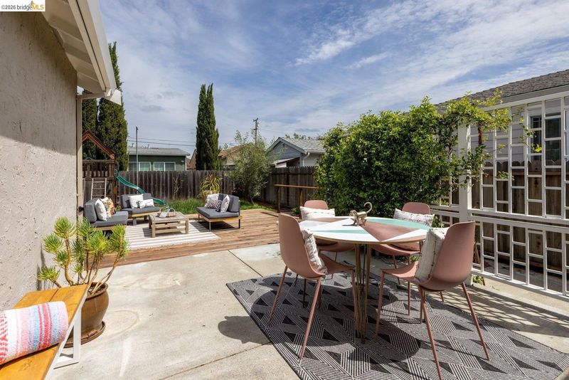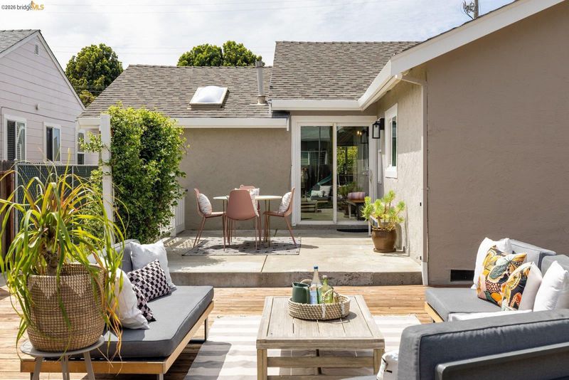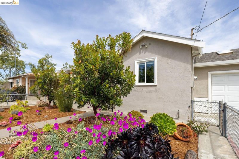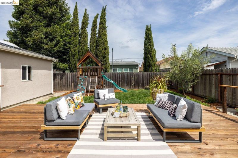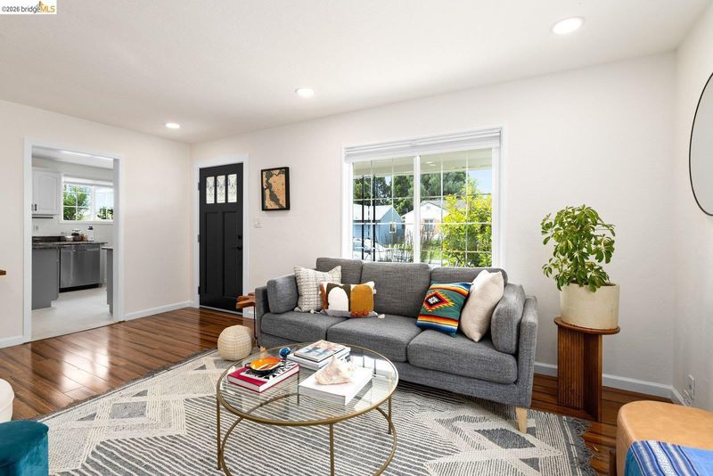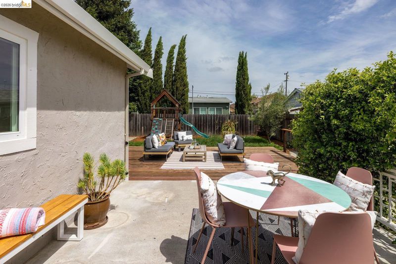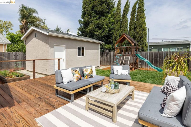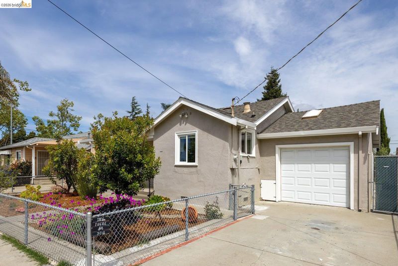 Tucked away on a residential street in San Leandro, 1240 Kelly Avenue is a charming single-level 3-bedroom, 2-bath home that blends comfort, functionality, and thoughtful updates, including air conditioning for year-round comfort. Filled with natural light, the home features an updated kitchen with stone countertops, a breakfast bar, and a clean, modern layout that connects easily to the main living and dining areas. The space feels open and inviting, with a natural flow that works well for both everyday living and gathering with friends and family. A sliding glass door extends the living space outdoors to a spacious patio and backyard set on a lot of over 5,000 square feet*, offering room to relax, play, or entertain. The yard includes a lawn, raised planter beds, and a play structure, along with a sizable detached bonus structure that provides flexible space for a home office, art studio, gym, or additional storage.* The attached one-car garage adds convenience and includes a washer and dryer, while the front yard features a welcoming porch along with a thoughtful blend of succulents, flowering plants, and mature landscaping that creates a warm and approachable entry. Well-located with easy access to parks, shopping, and commuter routes, this is a home that offers both comfort and flexibility in a setting that supports day-to-day ease.