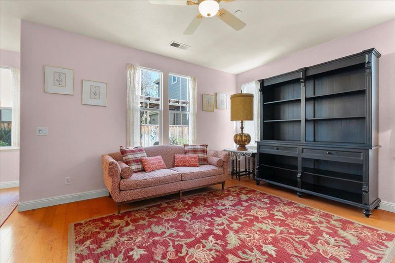 Welcome to Oak Commons Community, this inviting family home is located in the beautiful city of Gilroy. With a spacious 1,568 sq ft layout, this residence offers 3 bedrooms upstairs, including a master suite with a walk-in closet, and 2 full bathrooms with modern amenities such as a stall shower and shower over tub. The kitchen is equipped with tile countertops, a dishwasher, a microwave, garbage disposal, and a gas oven range, perfect for any culinary enthusiast. The living area features a cozy fireplace, making it ideal for entertaining. Flooring throughout the home includes carpet, hardwood, and tile, providing both comfort and style. An inside laundry area upstairs adds convenience to daily routines. Additional features include central air conditioning, a whole house fan for energy efficiency, and a forced air heating system. The home is located within the Gilroy Unified School District. With a tandem garage plus 2 large storage fixtures and a lot size of 2,200 sq ft, this property offers ample space for outdoor enjoyment for you to enjoy backyard BBQ's.