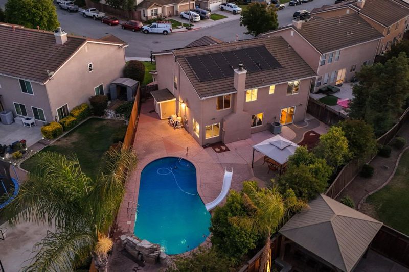 Welcome to 1740 Brentwood Court in Hollister! This spacious 5-bedroom, 3-bathroom home offers 3,060 sq ft of comfortable living space perfect for a large family or anyone who loves to entertain. The open layout features upgraded flooring throughout, a generous kitchen with a large island, and both formal and casual living areas. The kitchen flows seamlessly to the backyard, creating the ideal indoor-outdoor lifestyle. Step outside to your private oasis, complete with a heated pool, waterfall feature, and a convenient outdoor pool shower/bathroom area perfect for summer gatherings. With central AC, solar power, and a luxurious primary suite, this home truly has it all. Dont miss this incredible opportunity!
