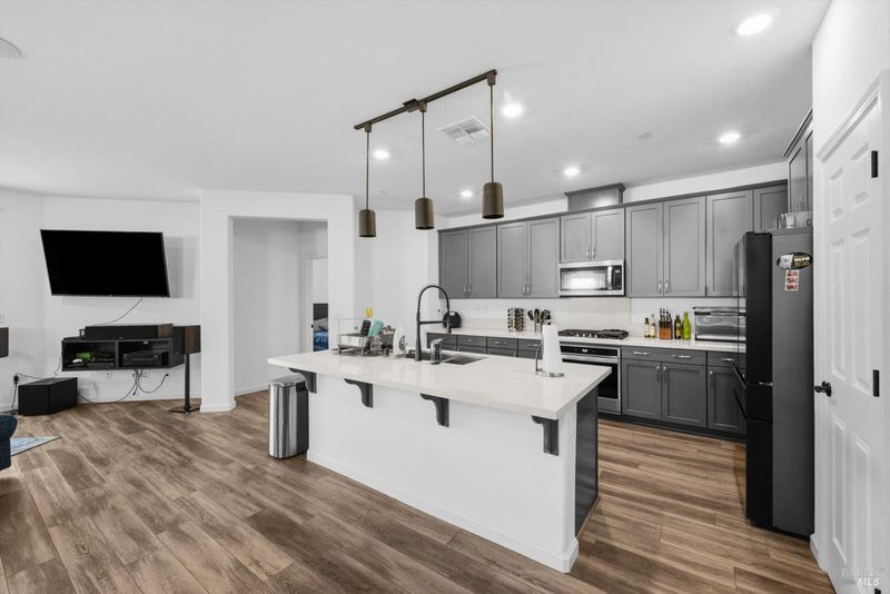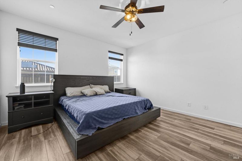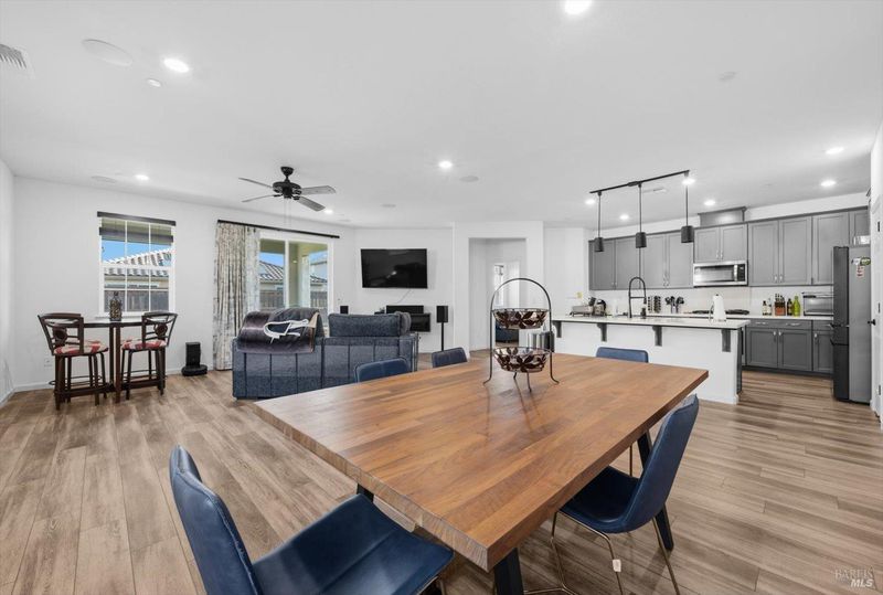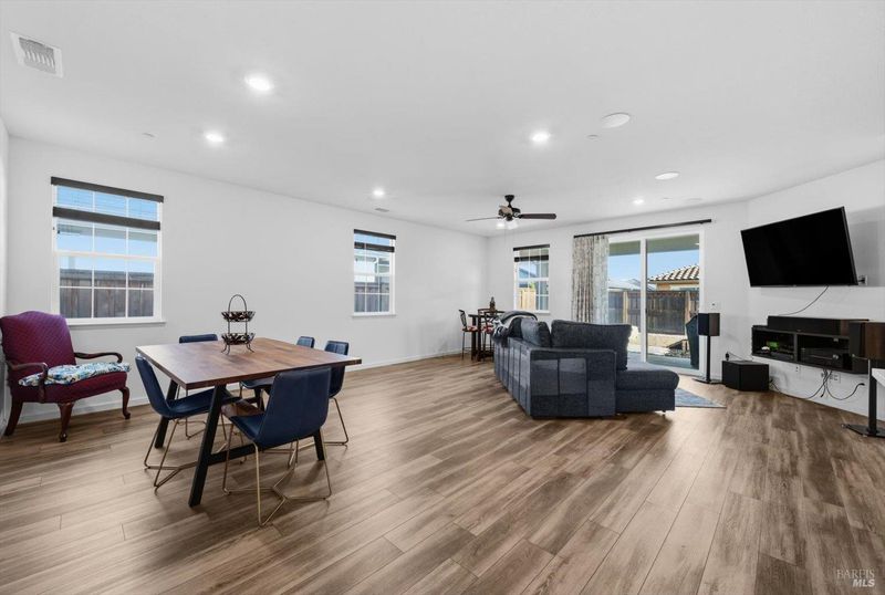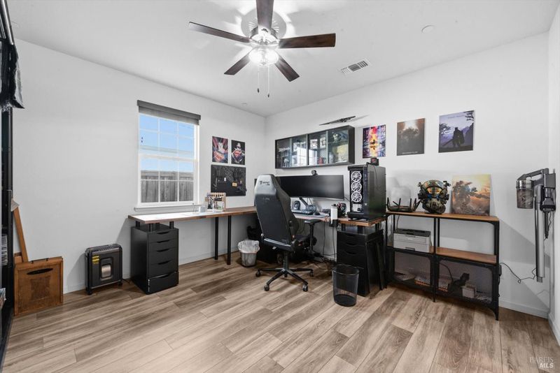 Looking for a move-in ready home? Just unpack and move right in. The layout flows in a way that just works, open living, dining, and kitchen spaces that stay connected without feeling crowded. Natural light, upgraded flooring, and clean finishes make it feel comfortable the moment you walk in. The kitchen is set up for real life, with premium countertops, an enhanced pantry, upgraded sink and fixtures, and an oversized dishwasher. Whether you're cooking, hosting, or just hanging out, it all comes together here. The living area is dialed in with surround sound and added recessed lighting in the dining space, giving it a warm, easy feel for both everyday living and entertaining. You'll also find high-speed wired LAN and USB outlets in every room, plus ceiling fans and upgraded lighting throughout. There's a dedicated office that can easily flex into a 4th bedroom, workout space, or private retreat, whatever fits your needs. The primary suite keeps things simple and functional with a walk-in shower and upgraded finishes throughout. Out back, the covered patio is ready to go with a gas line for BBQs or a future fire feature, plus space to relax and make it your own. Built in 2022 with owned solar, this home is energy-efficient and thoughtfully upgraded. Located near Travis Air Force Base, Interstate 80, shopping, dining, and parks, it keeps you close to everything while still feeling like home.