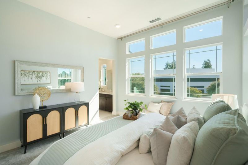 This beautifully updated 4-bedroom, 3.5-bathroom townhouse is located in the highly sought-after Nexus/Vale community in Sunnyvale. With 1,960 square feet of elegant living space, the home offers a bright and open layout featuring master suites on the 3rd floor, providing flexibility and comfort. The upstairs master suite boasts 11-foot ceilings, a walk-in closet, and a double vanity. The chef's kitchen includes stylish designer lighting, stainless steel appliances, a central island, an oversized walk-in pantry, and access to a private balcony and patio. Thoughtful upgrades throughout the home include engineered hardwood flooring, smart home technology, a whole-house water filtration system, and an epoxy-coated garage floor. Additional features include an attached two-car side-by-side garage and access to community parks and playgrounds. Located within top-rated Sunnyvale schools and walking distance to The Kings Academy, this home is also close to major tech companies, shopping centers, restaurants, and highways 101 and 237. Very close to Google, Meta, Linkedin and Amazon, a rare opportunity to own a modern, move-in-ready home in a prime Silicon Valley location, just minutes from everything!