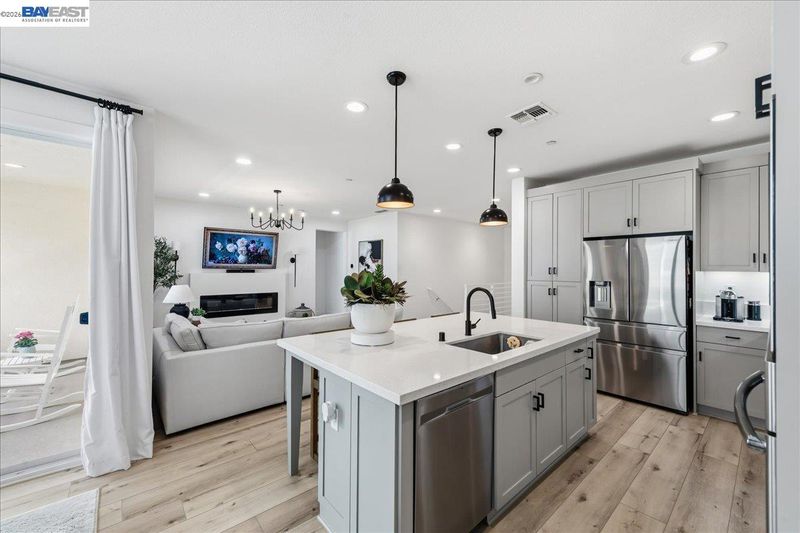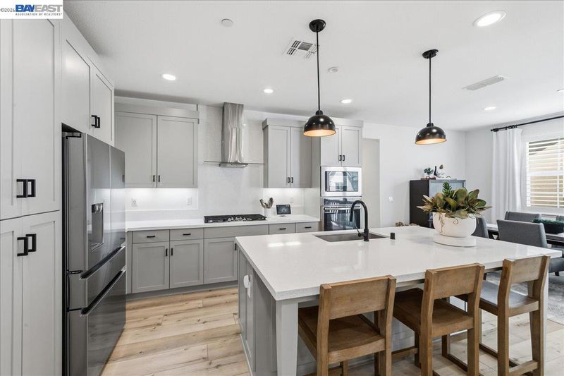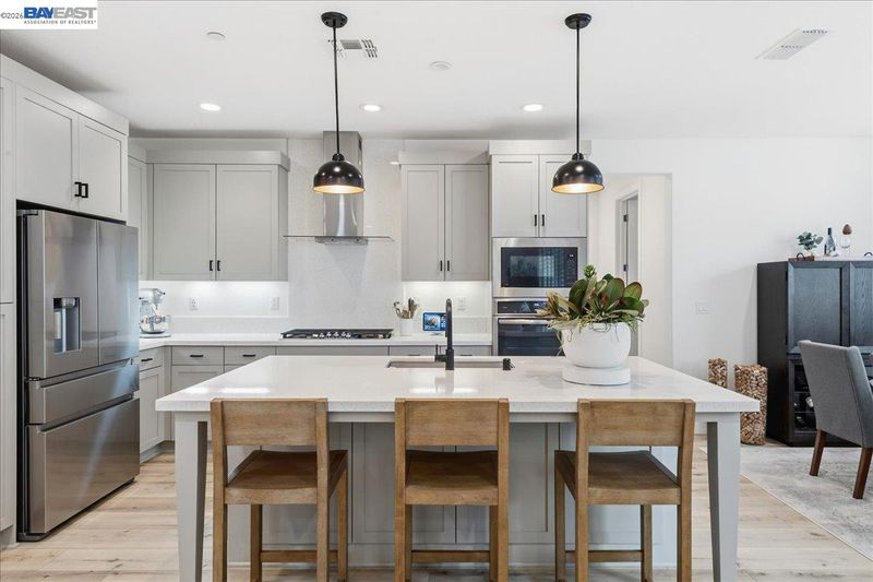 - Dishwasher, Gas Range, Plumbed For Ice Maker, Microwave, Oven, Refrigerator, Tankless Water Heater, 220 Volt Outlet, Breakfast Bar, Stone Counters, Eat-in Kitchen, Disposal, Gas Range/Cooktop, Ice Maker Hookup, Kitchen Island, Oven Built-in, Updated Kitchen