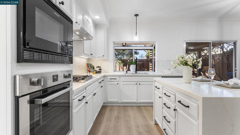 - Dishwasher, Double Oven, Gas Range, Oven, Refrigerator, Gas Water Heater, 220 Volt Outlet, Counter - Solid Surface, Eat-in Kitchen, Disposal, Gas Range/Cooktop, Kitchen Island, Oven Built-in, Pantry, Updated Kitchen