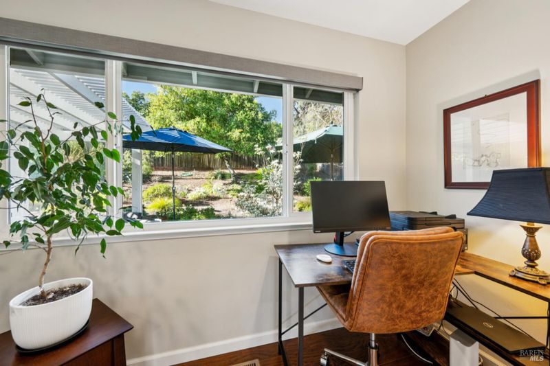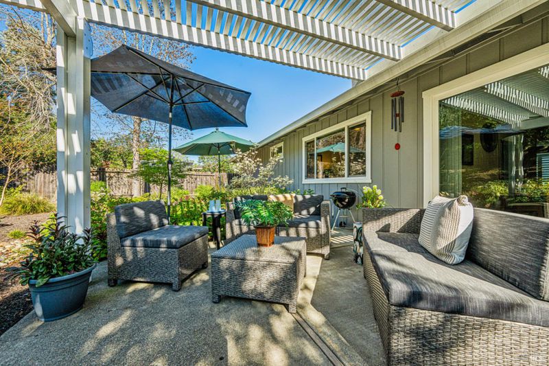 Beautifully updated and impeccably maintained, this Monterey model is a true Oakmont gem. The inviting single-level floor plan features 2 bedrooms plus a den/office (with Murphy bed), 2 baths, a formal living room, and a formal dining room. The spacious kitchen with breakfast area has been tastefully updated with solid-surface countertops, a full tile backsplash, custom white cabinetry, and stainless steel appliances. A sliding glass door off the dining room opens to a pergola-covered patio and a private, low-maintenance rear yard, filling the home with natural light and creating an ideal indoor-outdoor flow. The serene primary suite serves as a private retreat, complete with an updated en-suite bath. Move-in ready and designed for easy living, this special home also offers solar power, vinyl dual-pane windows, and a roof replaced just 7 years ago. Set in the heart of Oakmont, this inviting residence offers comfort, style, and low-maintenance living in the beautiful Valley of the Moon.