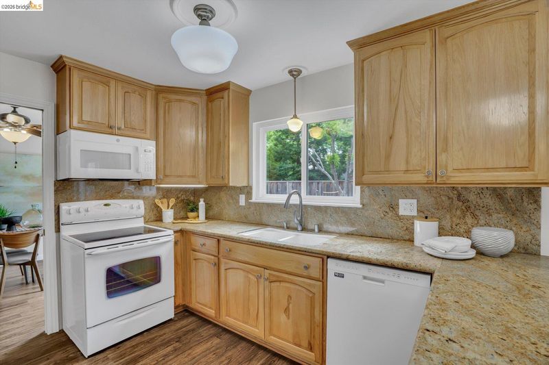 - Dishwasher, Electric Range, Plumbed For Ice Maker, Microwave, Refrigerator, Breakfast Bar, Breakfast Nook, Stone Counters, Electric Range/Cooktop, Ice Maker Hookup