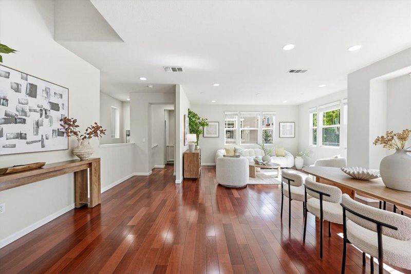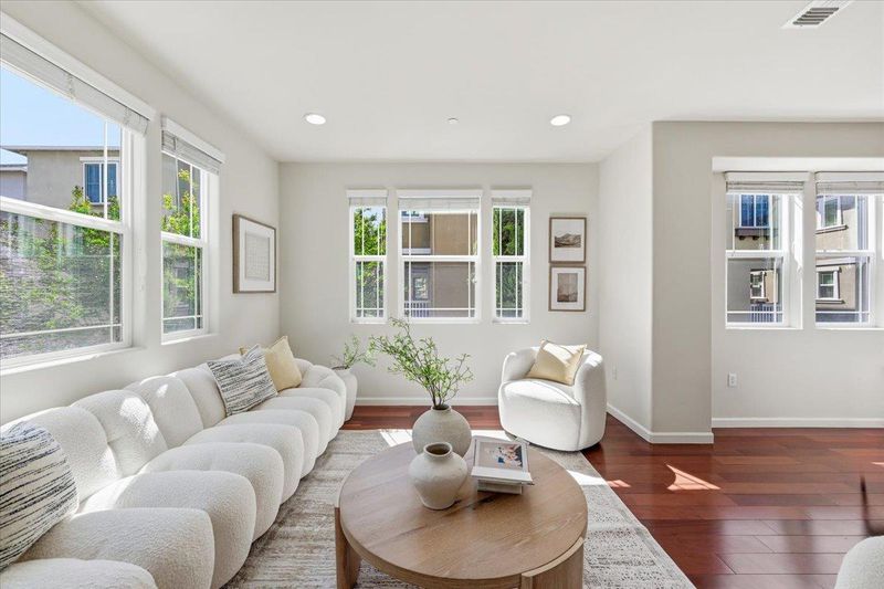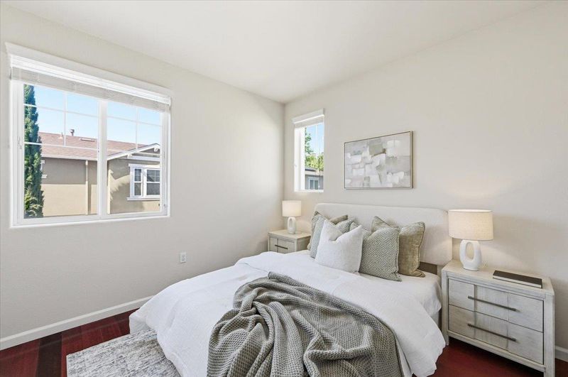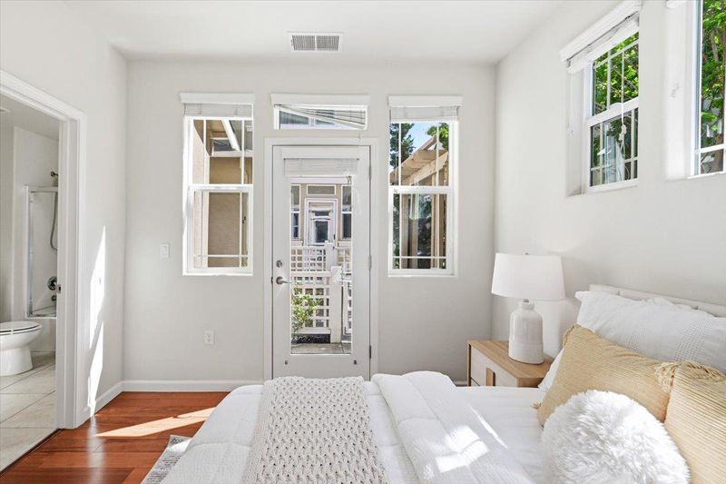 Welcome to this premium 4-bedroom, 3.5-bath end-unit single-family home in the desirable Central Park Terrace community. Approximately 2,093 sq ft, this home features one of the community's best-value floor plans. A ground-level suite with private exterior entrance and full bath offers exceptional flexibility for extended family, guests, or rental potential. The open-concept main level features 10-foot ceilings, Brazilian cherry hardwood floors, and expansive windows for abundant natural light. The gourmet kitchen includes granite countertops, an island, freshly painted cabinetry, and a large pantry. A private balcony extends the living space for seamless indoor-outdoor enjoyment. The luxurious primary suite offers a walk-in closet and en suite bath with dual vanities. Two generously sized secondary bedrooms provide comfortable additional living space. Ideally located just steps from scenic trails with direct access to Lake Elizabeth. Also within walking distance to Fremont Main Library, Aqua Adventure Park, and Kaiser. Convenient to Safeway, Apni Mandi, the Farmers Market, and major transit routes, including BART, I-680, and I-880, with easy access to Tesla and Meta for a smooth Silicon Valley commute.