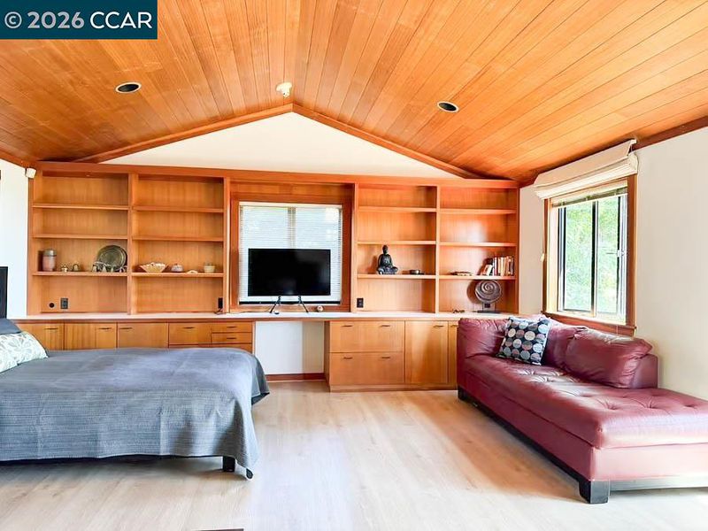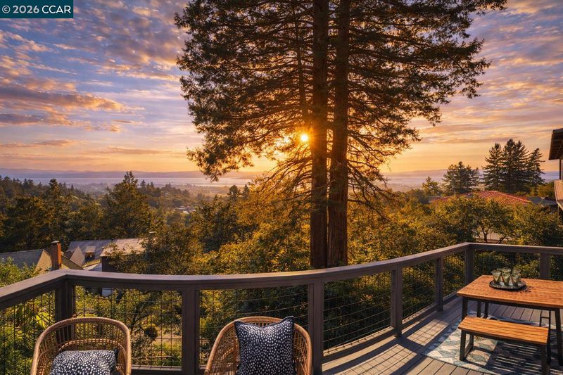 A rare gem in the Berkeley hills, this one-of-a-kind estate spans two parcels totaling over 12,000 SqFt. Beyond a private, understated entrance, a tranquil oasis unfolds with a serene courtyard, high ceilings, two expansive decks with sweeping Bay views, and a renovated ADU with its own deck and vista. Surrounded by nature, the light-filled split-level layout feels both open and defined, balancing vibrant gathering spaces with peaceful retreats. At its heart, the chef’s kitchen shines with quartz counters, custom cabinetry, premium appliances, and a wine fridge—connecting seamlessly to the dining area and deck for al fresco meals overlooking the Bay. The main level offers three inviting bedrooms, including a flexible office with private entry. Downstairs features a welcoming family room, media area, wet bar, full bath, and guest suite opening to a private deck amid lush greenery. Wine storage, dual laundry areas, and a two-car garage with 220V EV outlet add convenience. Fruit trees and a bocce court complete this serene East Bay retreat near Tilden Park, downtown Berkeley, Oakland, and San Francisco. Beso Score 5.