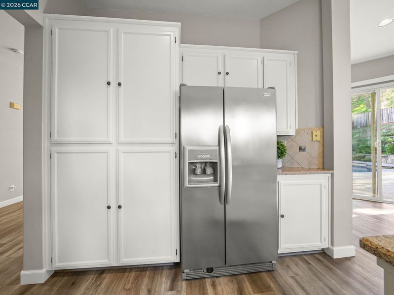 Sprawling single story tucked away on a cul-de-sac backing to open space! Upgraded Vinyl "wood plank look" flooring and new neutral carpet throughout! New HVAC unit, neutral paint and updated baths! Huge reconfigured combined dining and living room with sunny windows, recessed & upgraded lighting and a drybar with glass display cabinets. Gourmet kitchen with slab solid surface counter, island and full decorative tile backsplash! Stainless steel appliances and large sun filled window with garden ledge opens to the adjacent family room offering a cozy wood burning fireplace with solid slab surround, raised hearth & wood mantle. Private & spacious primary suite features a wood burning fireplace and slider to patio. Updated primary bathroom boasts an oversized stall shower with solid slab surround & glass enclosure, vanity with dual sinks and a separate make-up vanity and a large walk-in closet. Private rear yard backs to oak dotted open space and features an in-ground freeform pebble tech pool with raised spa and waterfall feature, solar heat, extensive aggregate patio with brick & stone hardscape, a covered patio and pergola! Must see!