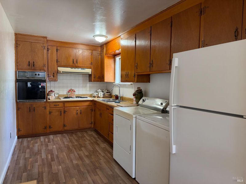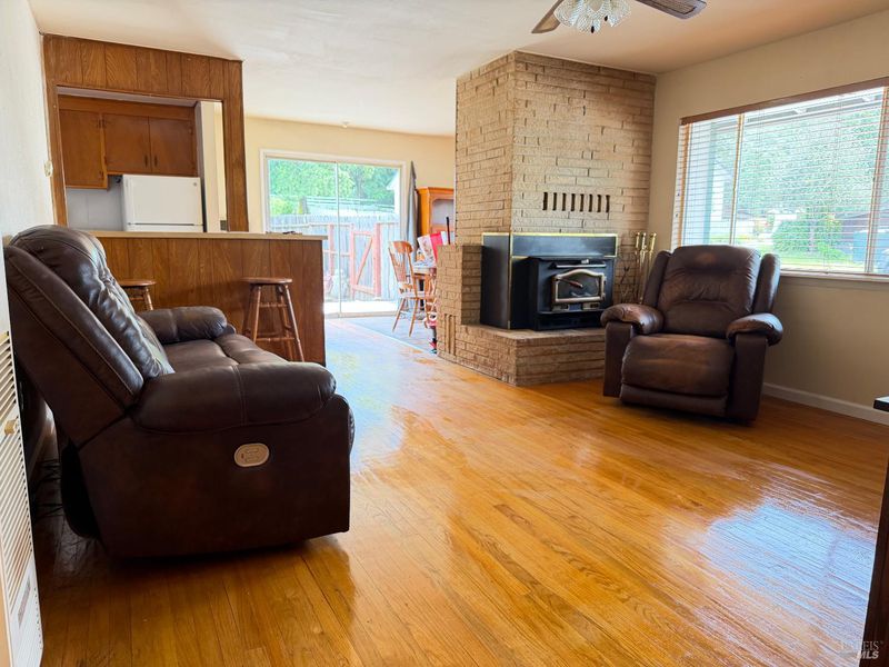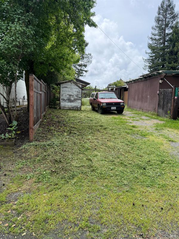 Rarely does a home at this price point become available in the highly sought-after location of Graton. This charming, single-level residence features three bedrooms and one bathroom, perfectly situated on a desirable corner lot. The interior offers an inviting living room with original hardwood floors and a cozy wood stove for those chilly nights. The functional layout includes a galley kitchen with ample cabinet storage, a designated dining area, and spacious bedrooms, complemented by a large hallway bathroom with a double-sink vanity. Outside, the flat and usable yard is shaded by mature trees, offering plenty of space for gardening and room to create your ideal outdoor oasis. This home is waiting for your vision and personal touches, a perfect chance for buyers looking to customize and add significant value in a well-established neighborhood. With its prime location and immense potential, this property offers a unique chance to create something truly special in the heart of Graton.
