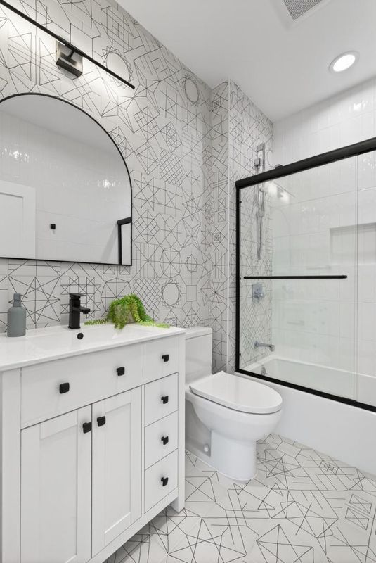 - Double Sinks, Dual Flush Toilet, Full on Ground Floor, Primary - Stall Shower(s), Shower over Tub - 1, Stall Shower, Tub, Updated Bath