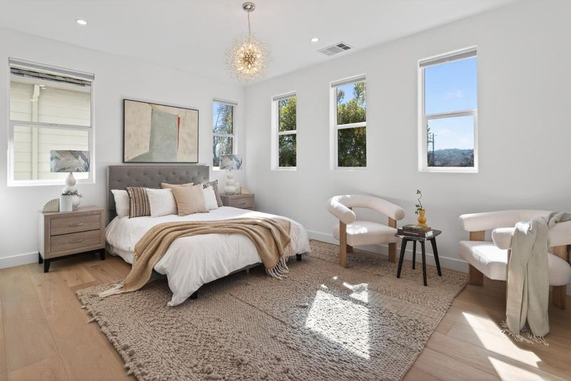 This stunning Sunnybrae gem, built in 2013 and extensively reimagined with a new layout in 2025. Showcases designer-level finishes, soaring ceilings, and a floor plan curated for effortless modern living. Fully detached with windows on three sides, the home is filled with abundant natural light and enhanced by central heating and AC. The main floor flows seamlessly from an elegant living space into a contemporary kitchen outfitted with premium appliances, including a Thermador built-in coffee machine. The versatile dining area opens to a neat low-maintenance backyard. This floor also features a full bath. Upstairs: spacious primary suite features a walk-in closet and a stylish bathroom with double sinks, 3 additional beds, a hallway bath, and a laundry closet provide comfort and practicality. The 2-car garage equipped with a 240V EV-ready outlet, offers endless potential - ideal as a home gym, office or your startup hub. The covered front porch is perfect for morning coffee or quiet reading. Assigned to Aragon High School. Walk to Sunnybrae Park, vibrant downtown San Mateo, popular eateries, Suruki Market and the upcoming Woodlands Market. Enjoy everyday convenience and seamless access to San Francisco and the South Bay. Now's your chance to make this exceptional home your own.