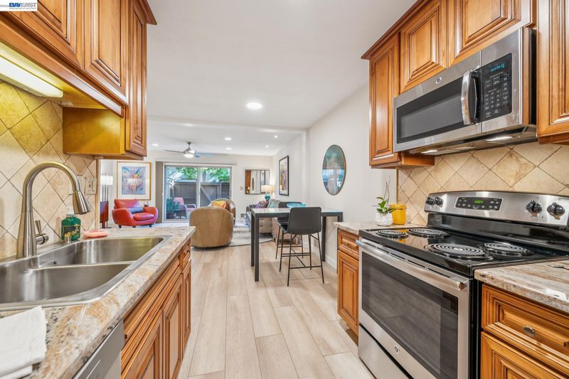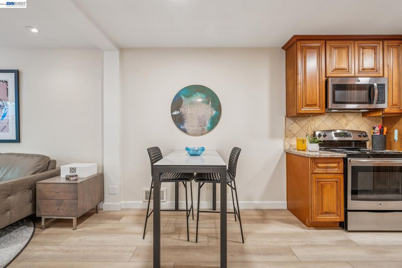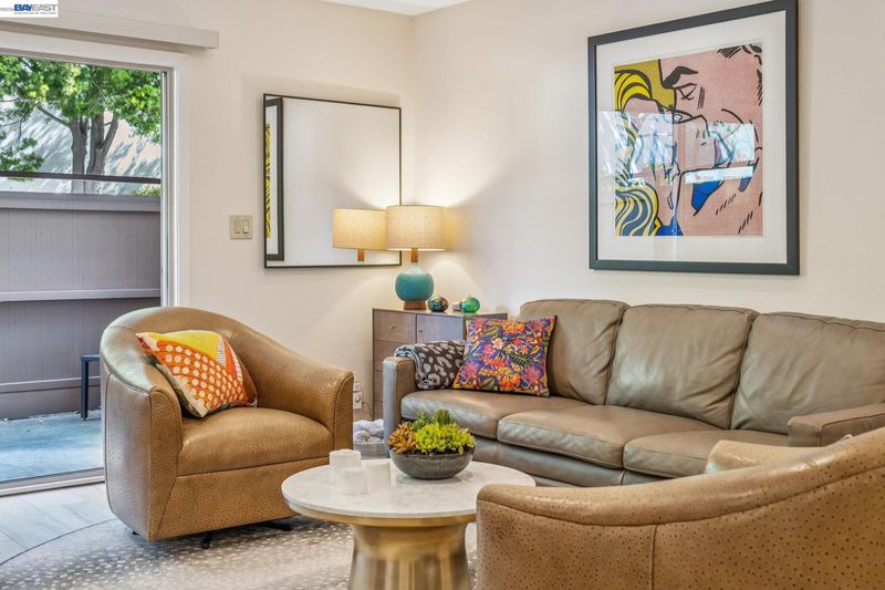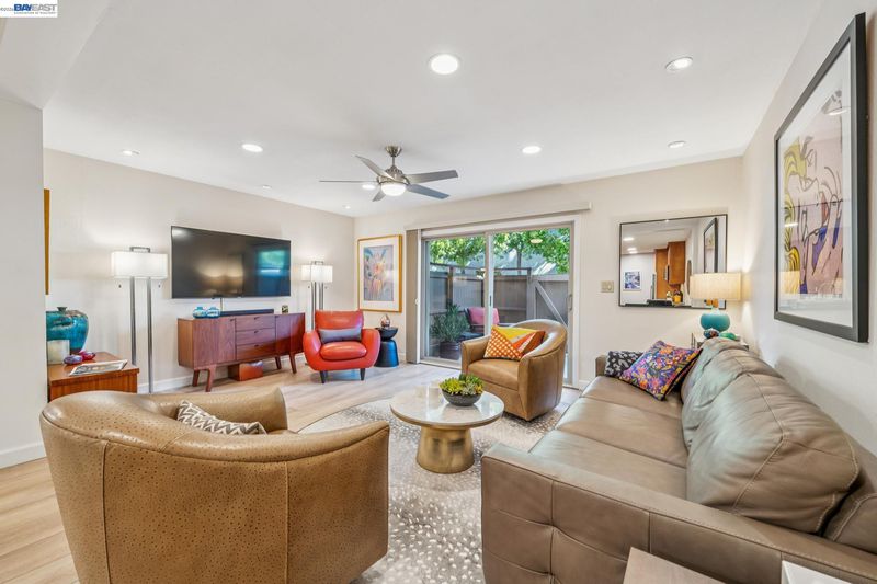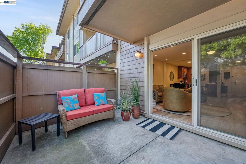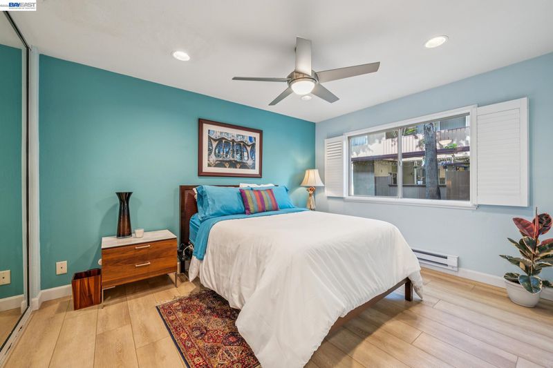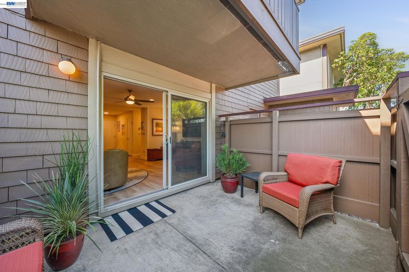 Live like you’re on vacation in this upgraded 1BD/1BA ground-floor condominium in Alameda’s Park Webster Community. Just blocks from the beach, lively Webster Street, and excellent parks, this 690 SQFT home offers an easy island lifestyle with a private patio entrance, extra storage unit across the hall, and your dedicated parking space steps away, right outside the patio gate. The home lives large with a generous living and dining area, where a sliding glass door opens directly to the fenced patio for seamless indoor/outdoor living. Whether entertaining friends or enjoying a quiet morning, this outdoor space feels like an extension of the home. Inside, new hardwood floors and recessed lighting flow into the inviting kitchen, complete with stainless steel appliances and a new refrigerator. The bedroom is spacious, with a sunny window and custom Elfa Closet system, while the stylish bathroom has been thoughtfully updated with a new vanity, lighting, and a barn-style tub shower door. Additional upgrades include new ceiling fans, fresh paint, and updated window treatments. Park Webster is a gated community with amenities including a swimming pool, clubhouse, gym, sauna, extra storage, and on-site laundry. Out your front door, enjoy nearby Washington Park with tennis, basketball courts, and the dog park. Alameda’s shoreline is moments away, with Crab Cove, Crown Memorial State Beach and miles of scenic trails. Shopping, dining, and daily conveniences are close at hand on Webster Street, Alameda Landing, the twice weekly Farmers Market, and Shoreline Shopping Center. Commuters will appreciate easy access to the SF Ferry, Transbay bus lines, and BART shuttles.