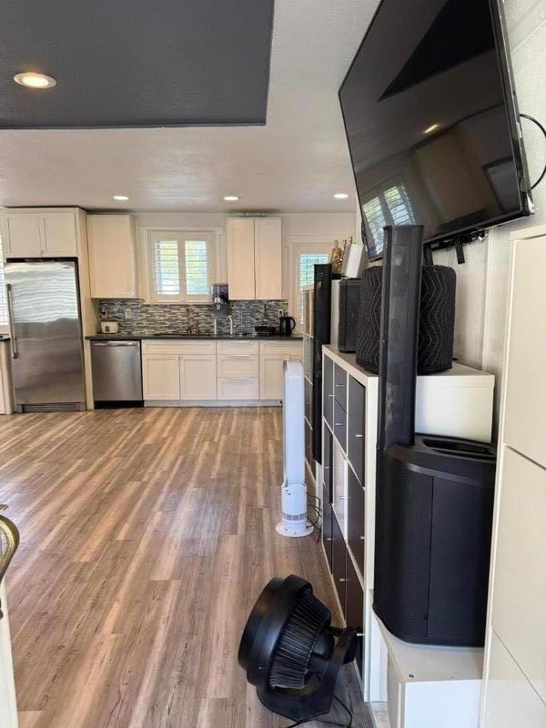 Welcome to this beautifully updated 2-bedroom, 1-bath home featuring a modern open floor plan and stylish finishes throughout. The kitchen is equipped with sleek quartz countertops, stainless steel appliances, and an elegant backsplash, seamlessly combining functionality with contemporary design. Enjoy luxury laminate vinyl plank flooring, in-unit washer and dryer conveniently tucked under the countertop, and two spacious storage sheds in the large backyard perfect for extra space or hobbies. Centrally located in a high-demand commercial area of downtown Hayward, this property offers unbeatable access to local shops, banks, restaurants, and public transportation. Perfect for those seeking the ideal balance of residential comfort and urban convenience.