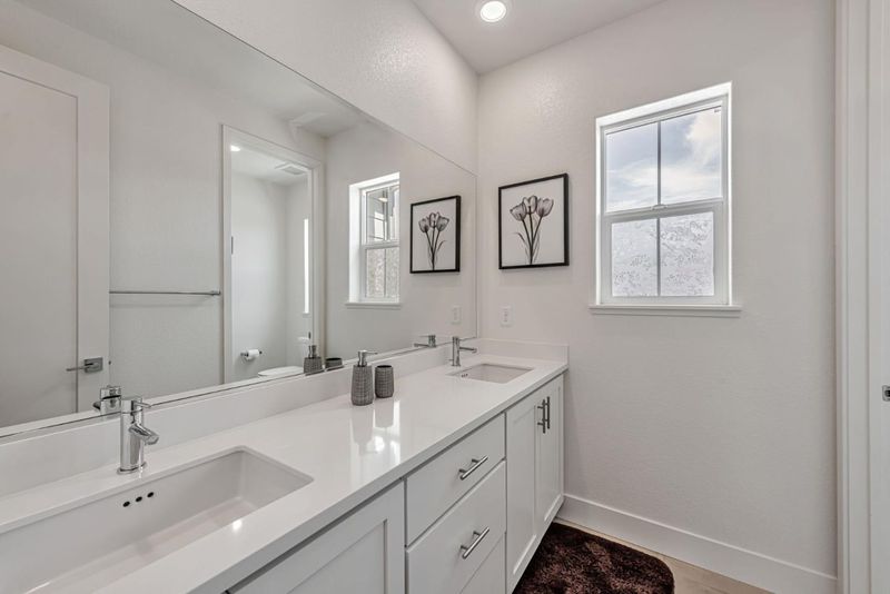 - Shower over Tub - 1, Double Sinks, Stall Shower, Tub in Primary Bedroom, Full on Ground Floor, Oversized Tub