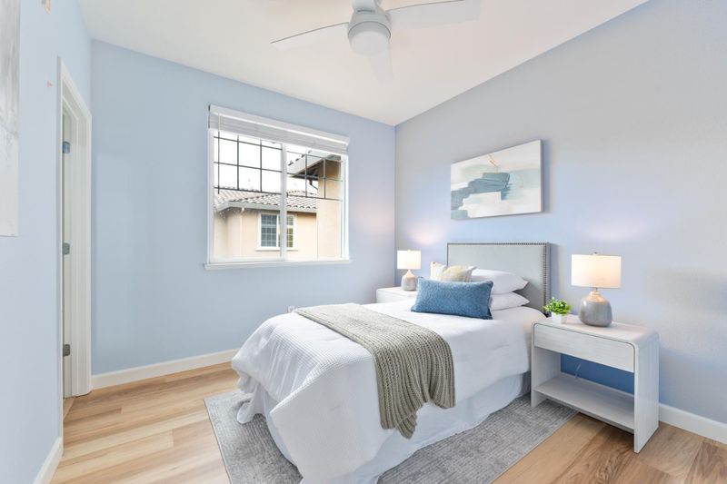 Discover modern elegance in this beautifully updated 3-bedroom, 3.5-bathroom, 1,793 sq. ft. townhome tucked away in desirable Willow Glen. Flooded with natural light, the open-concept living area features wide-plank floors, a cozy gas fireplace, and seamless flow into an updated gourmet kitchen boasting ample storage, quartz countertops, white shaker cabinetry, a designer tile backsplash, and premium stainless steel appliances. The versatile tri-level layout offers a luxurious top-floor primary suite with a walk-in closet and spa-like dual-vanity bath, alongside a highly coveted ground-floor junior suite ideal for a private home office or guest space. This home is complete with central A/C, convenient upper-level laundry, an adorable private front patio, and a rare attached 2-car side-by-side garage. Perfectly situated near River Glen Park and the vibrant shops and dining of Downtown Willow Glen, with effortless access to major freeways (87/85/280) and Silicon Valley's tech companies, this property effortlessly blends sophisticated design with ultimate convenience.