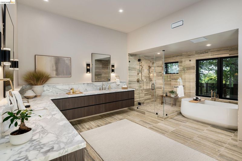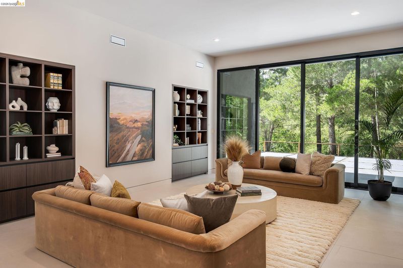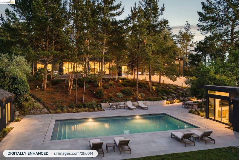 A truly rare offering, 5645 Bacon Road is a one level-brand new modern estate of exceptional scale, glamour, and architectural presence. This one of a kind single level residence features 6 luxurious bedrooms, each with its own ensuite full bath, plus 2 half baths. Soaring 12 foot ceilings, expansive light filled spaces, and a dramatic 10 by 20 glass sliding door create a seamless indoor outdoor lifestyle. Designed for both grand entertaining and elevated daily living, the home offers an oversized living room, private office, gym, cigar lounge, and a stunning chef’s kitchen with Wolf and Sub Zero appliances, complemented by a secondary prep kitchen. Outdoors, enjoy an oversized pool (to be completed by COE), a pool house with full kitchen, a second pool house with full bath, level grounds, multi car garage, and a motorized gated entrance framed by olive trees. Sleek, grand, and unforgettable, this exclusive new construction is a once in a lifetime opportunity and one of the most spectacular modern homes to come to market in Oakland in years.