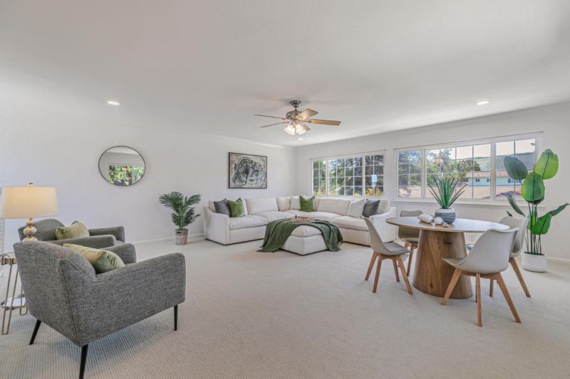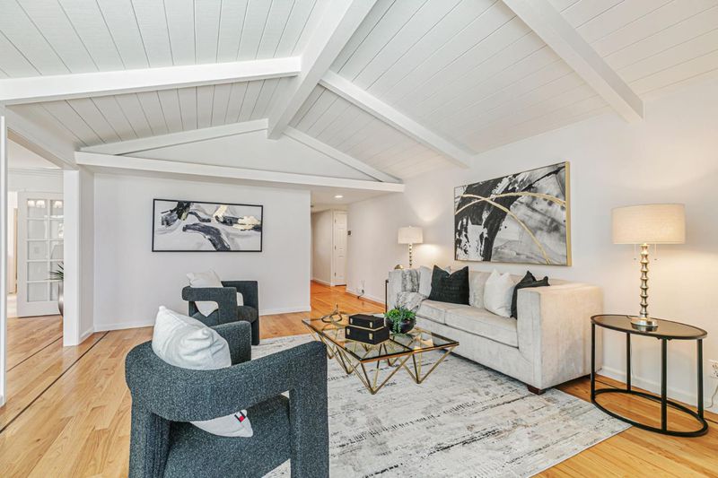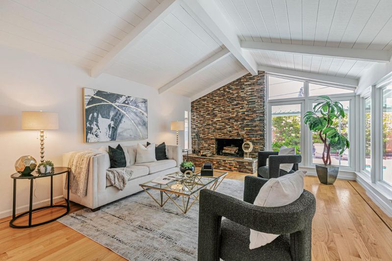 Located in Saratoga's coveted Golden Triangle neighborhood, this home offers access to top-rated Saratoga schools. The main level features four bedrooms including a spacious primary suite, while the upstairs bonus room with a full bathroom provides endless options for a game room, office, or family retreat. The light-filled living room boasts vaulted ceilings, floor-to-ceiling windows, and a custom stone fireplace. Additional highlights include a gourmet kitchen, hardwood floors, skylights, recessed lighting, dual-pane windows, and updated marble-finished bathrooms. Outdoor living shines with a swimming pool, cabana with an additional bathroom, garden beds, and a covered patio. A rare feature of this property is direct access to Congress Springs Park, creating a true extension of your backyard.
