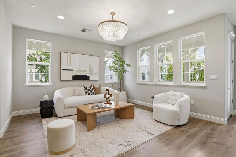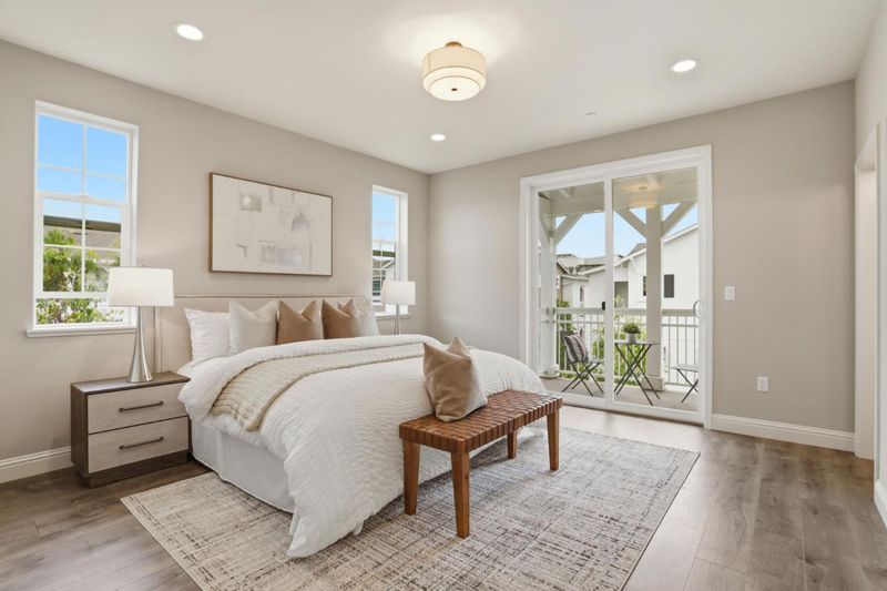 Situated on a desirable CORNER homesite, this sun-filled townhome offers a highly sought-after floor plan with three bedrooms, each featuring its own ensuite bathroom and walk-in closet. Ideally positioned in a peaceful yet well-connected location, the home blends comfort, style, and everyday convenience. The first floor features a spacious bedroom suite with a dedicated workspace, perfect for guests, extended family, or a private home office. The main level showcases a bright, open living area, a modern kitchen with pantry and oversized island, and a private covered balcony ideal for indoor-outdoor living. The primary suite serves as a relaxing retreat with a generous walk-in closet, spa-inspired bathroom, and its own private covered balcony. Conveniently located near top private schools, including Merryhill, Stratford, and Challenger, and within walking distance to the Great Mall, dining, light rail, Milpitas BART station, and bus stops. Enjoy quick access to Trader Joes, Costco, and major freeways, including 880, 680, 237, and 101, along with top-rated Milpitas schools.