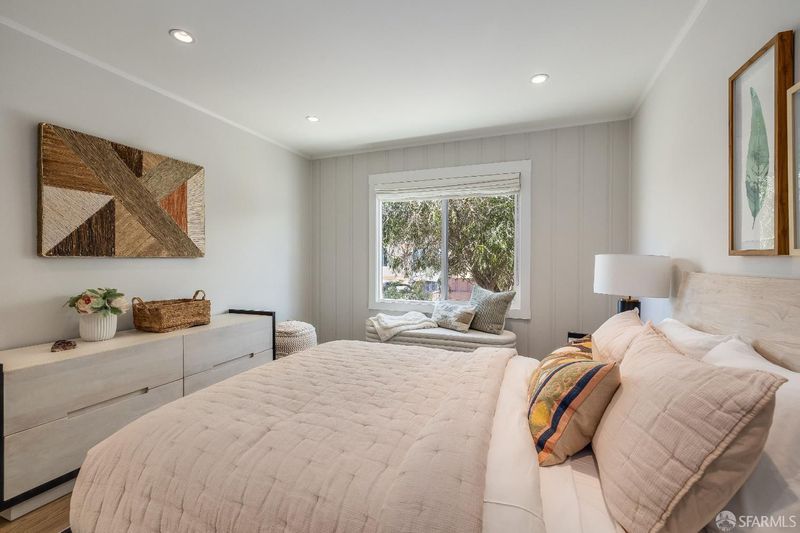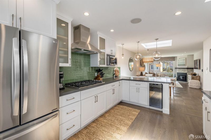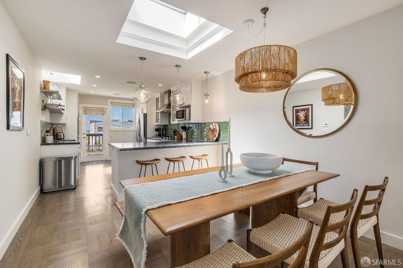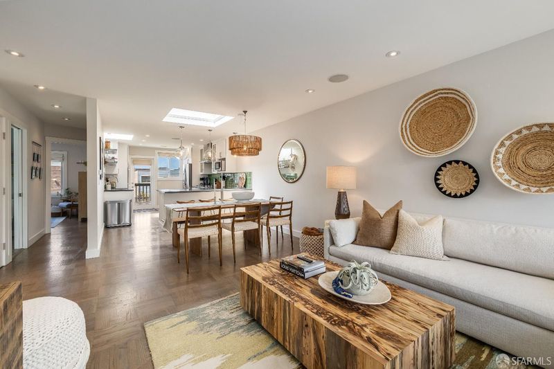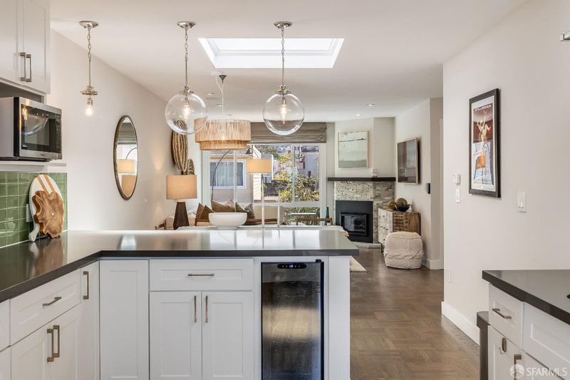 3BR+Office! There is a different pace of life at the edge of San Francisco, where light softens, the air carries a hint of salt, and the Pacific shapes each day. Just one block from Ocean Beach and moments from the evolving Great Highway Park, the coastline becomes part of your daily rhythm, from morning walks along the sand to evenings defined by ocean air and sunset light. This fully reimagined mid century home pairs that setting w/ a comprehensive renovation and thoughtful lower level addition, elevating both design and infrastructure. Upgrades incl new electrical w/ Tesla charger, updated plumbing, remodeled kitchen & baths, and new windows, creating a level of finish rarely found in homes of this era. Inside, natural light moves easily thru the home, enhanced by multiple skylights and a clean, cohesive material palette. Radiant heated polished concrete floors ground the lower level, while driftwood toned parquet above reflects the surrounding coastal tones. The main level offers seamless flow from living to dining to kitchen, anchored by a gas fireplace w/ natural stone surround and complemented by in ceiling audio. The kitchen balances warmth and sophistication w/ dark quartz counters, forest green tile backsplash, and high end appliances incl Fisher & Paykel, KitchenAid, and LG, plus double oven & wine fridge. Toward the rear, large glass openings frame views of the dunes and Pacific beyond, bringing in shifting light and a constant connection to the coast. The rear deck and yard extend the experience outdoors w/ easy indoor outdoor flow, concrete pavers set in river rock, ambient lighting, and coastal inspired finishes. Bedrooms are bright and well proportioned, while the lower level primary suite offers a private retreat w/ custom closets, built in seating, and a spa like bath. Just blocks away, the Noriega corridor offers everyday convenience w/ neighborhood favorites like Devil's Teeth Baking Company, Marco Polo Italian Ice Cream, Gus's Community Market, and more. Here, thoughtful design meets an exceptional coastal setting, where the beach is not a destination, but part of everyday life.