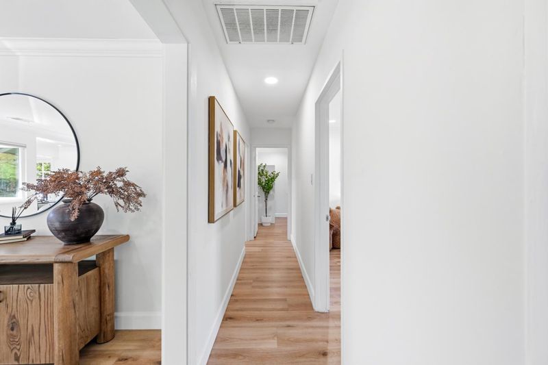 Beautifully renovated home on an expansive 8,000 sq ft lot in a prime Sunnyvale location! Move-in ready and filled with charm, this rare property offers a private, garden-inspired retreat surrounded by mature trees, colorful blooms, and fragrant roses. The bright and welcoming living room features large windows, recessed lighting, crown molding, and a cozy gas fireplace. The stunning remodeled kitchen showcases custom cabinetry, pantry storage, Silestone countertops, a chevron backsplash, stainless steel appliances, and a skylight that brings in abundant natural light. Thoughtfully upgraded with central A/C, new insulation, updated piping, owned solar, double-pane windows, and premium Pella triple-pane windows with built-in blinds for enhanced comfort and efficiency. Updated bathrooms and 4 generously sized bedrooms, including a comfortable primary suite. Enjoy exceptional outdoor living with beautifully designed pavers, outdoor kitchen/BBQ, fire pit, veggie beds, and a variety of mature fruit trees perfect for relaxing or entertaining year-round. Fantastic location just ~0.5 mile to parks, shops, dining & coffee, with easy access to 85, 280, 237 & 101 and close to major tech campuses. Top-rated schools! MUST SEE!