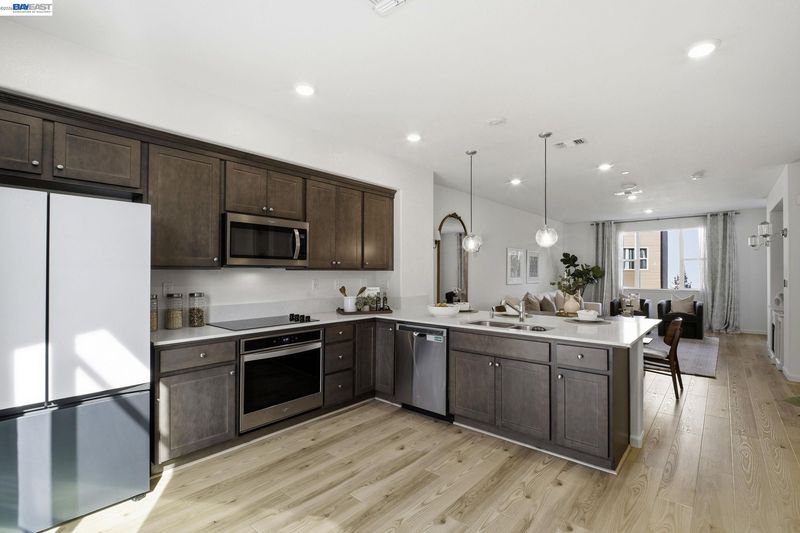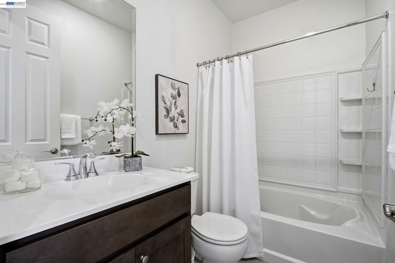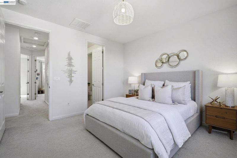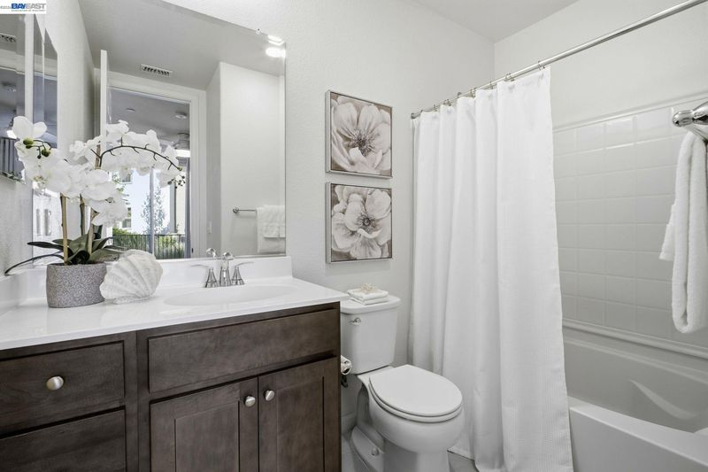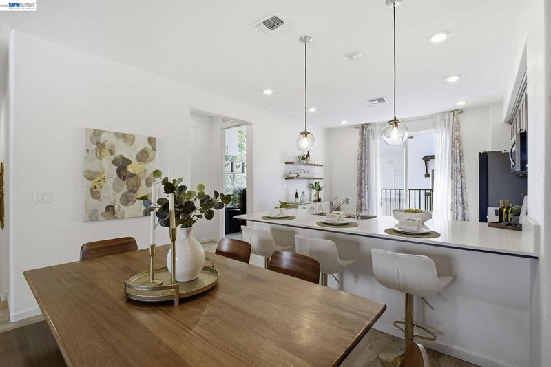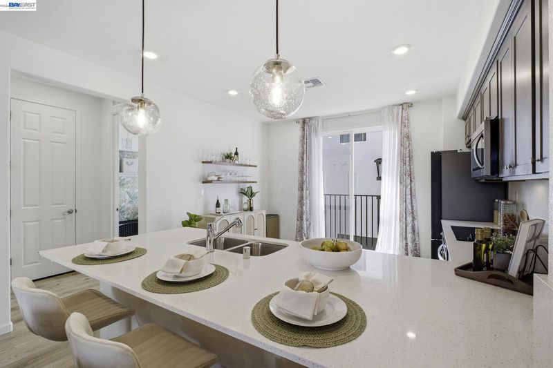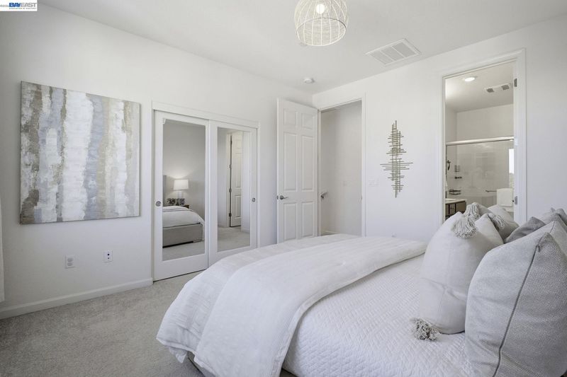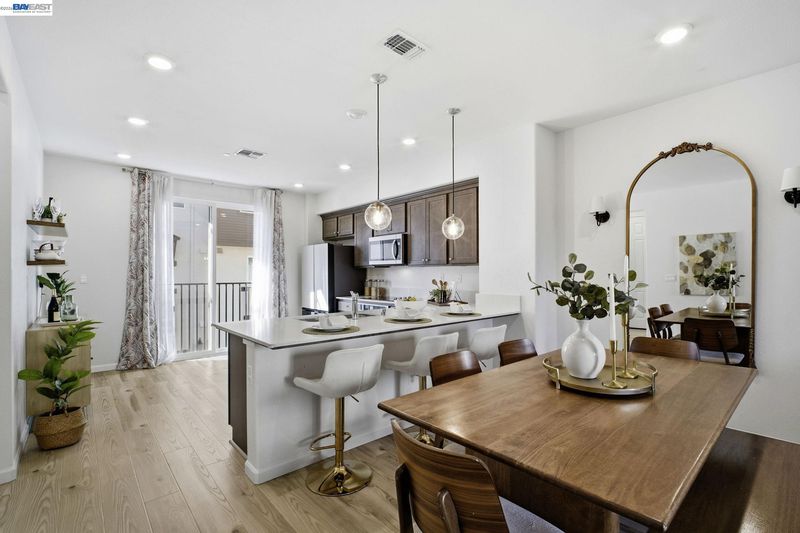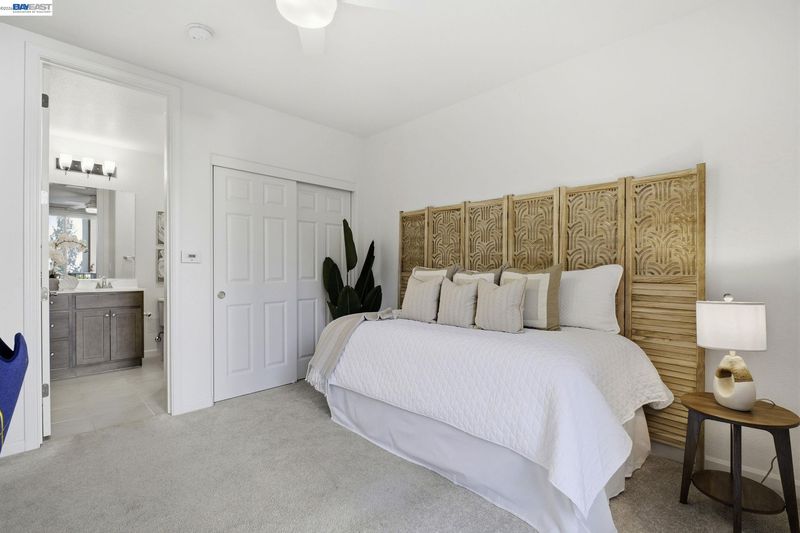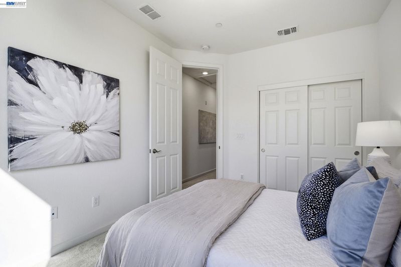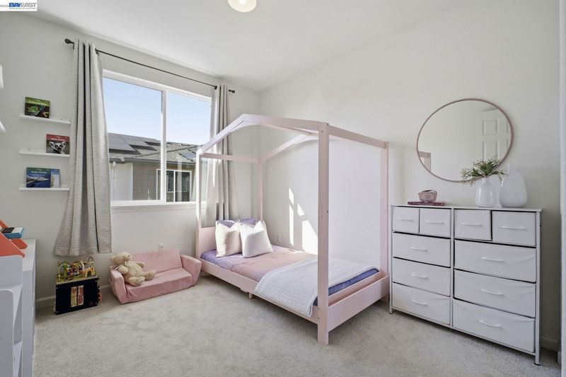 Tucked away in a quiet interior location, this beautifully updated 4BD/3.5BA townhome offers 1,892 sq ft of bright, modern living with partial golf course views. Built in 2022, this energy-efficient home features an open-concept main level with kitchen, dining, living area, and a convenient half bath. Natural light flows throughout, highlighted by large living room windows and a striking floor-to-ceiling stairway window that adds architectural character and an airy feel. The first level includes a private bedroom with en-suite bath and access to its own outdoor space—perfect for a reading nook or mini garden. Upstairs, the primary suite features abundant light, treetop views, a large closet, and en-suite bath with dual sinks and a spacious shower, plus two additional bedrooms and a full bath. Additional highlights include owned solar and multi-level heating and A/C for enhanced comfort and efficiency. Enjoy a peaceful community with BBQ area and playground, just minutes from BART, I-880, Hwy 92, shopping, dining, and everyday essentials—including Starbucks steps away.
