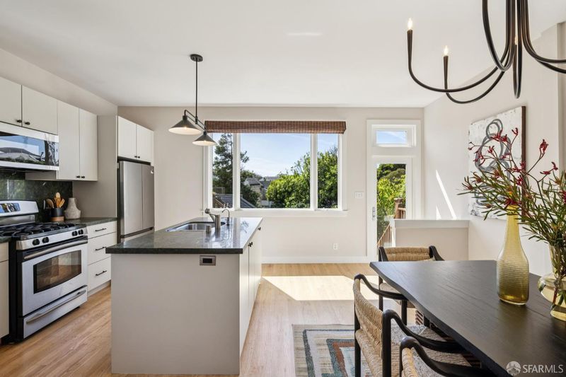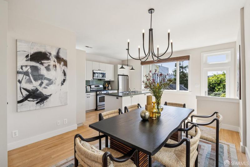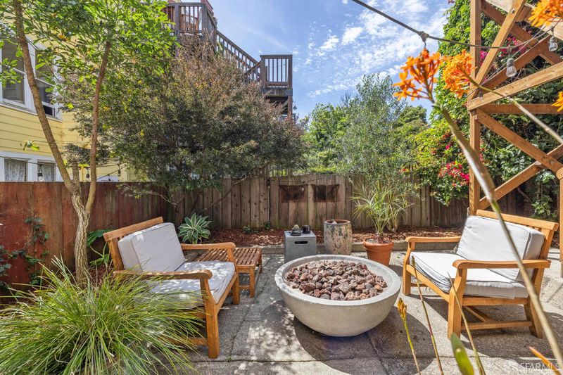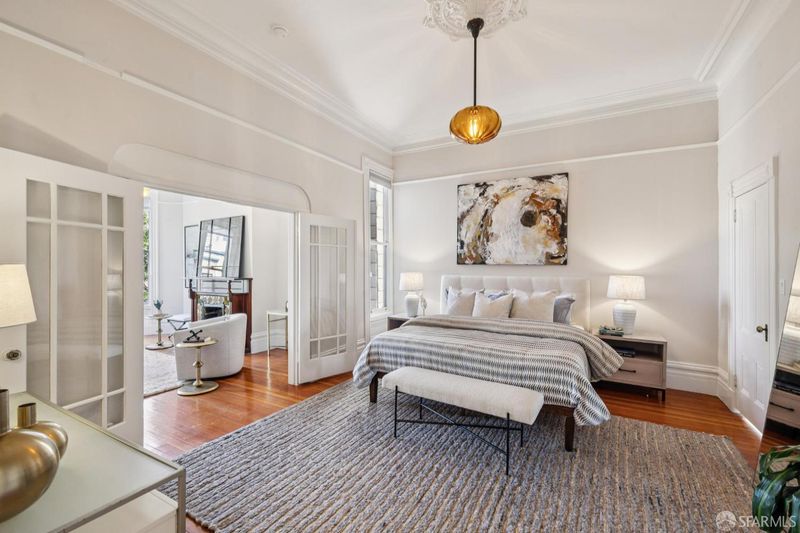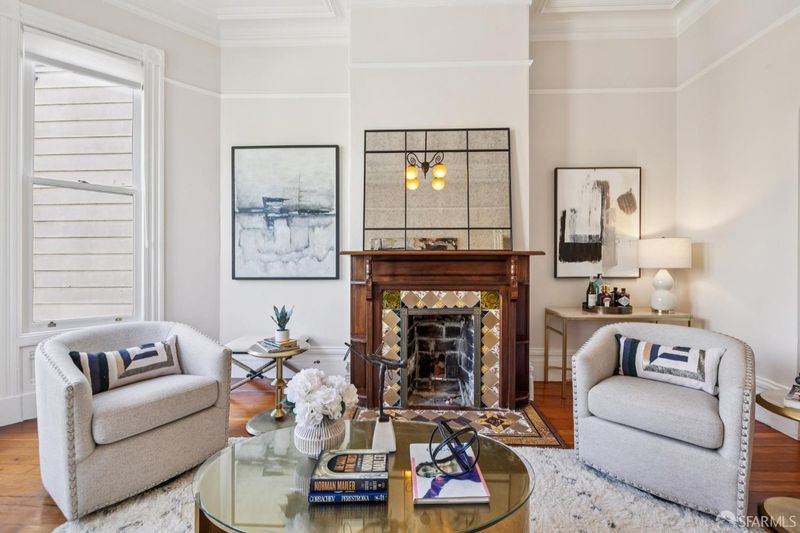 Charming top-floor, full-floor Victorian condominium in a boutique 2-unit building just a half a block from Alamo Square Park. Rich in period detail and scale, this home blends timeless character with modern living. A gracious stair ascent, lined with classic wainscoting and illuminated by a stained-glass skylight, sets the tone. Inside, soaring ceilings, oak and fir floors, and elegant moldings create a warm and elegant backdrop. The expansive front living room features a fireplace with a whimsical tile surround and wood mantle, and east-facing bay windows. An inviting family room with a fireplace connects to a spacious eat-in kitchen equipped with a large dining area, center island, stone countertops, stainless appliances, pantry cabinet, and treetop outlooks. Down the hall, a primary suite has a chic ensuite bath with shower over clawfoot tub, a 2nd bedroom has an ensuite bath with shower and French doors, and the 3rd bedroom is ideal as an office/nursery. 1-car garage parking (side-by-side), a deeded storage area/home gym, shared laundry, and a beautifully landscaped shared yard with firepit complete the amenities. Live the ultimate SF lifestyle just moments from the greenery of Alamo Square Park and Golden Gate Park Panhandle and neighborhood favorites like Lucinda's Deli, Bi-Rite Market, NOPA, and Bar Crudo, with easy access to the Panhandle, Muni, and the Wiggle.