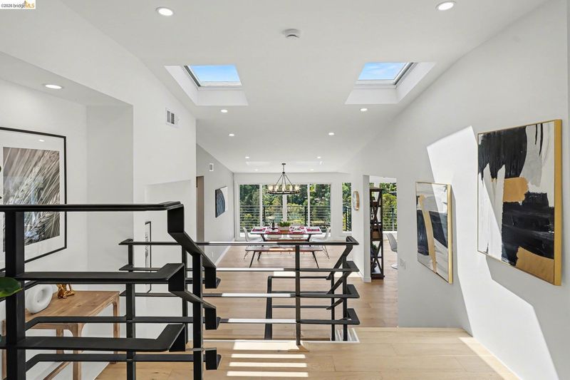 Tucked away in the highly desirable Montclair Hills, this fully renovated residence blends modern finishes with serene, nature-filled surroundings. Featuring an open floor plan and expansive windows, the home is filled with natural light and captures panoramic hillside forest views with a glimpse of the Bay. This versatile layout offers two spacious primary suites and a large family room or office with a sink. The lower levels provide an abundance of flexible spaces ideal for a gym, theater, office, storage, or other potential uses. Upgrades include Level 5 smooth walls, engineered wood flooring, a 200-amp main panel, copper plumbing, and two central heating and A/C systems with dual-zone controls. Skylights with retractable covers enhance the natural brightness throughout. The stylishly remodeled kitchen and four updated bathrooms complete the modern interior. Situated on a generous lot, the property features two attached garages, a large driveway, and an expanded backyard perfect for gardening or outdoor enjoyment. Sewer lateral compliant. Conveniently located near Montclair Village, regional parks, hiking trails, and top-rated schools, with easy access to Highway 13 for an easy commute.