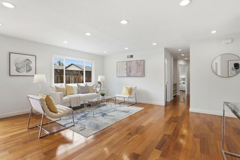 Experience the quintessential Campbell lifestyle in this stunning three-bedroom, two-bathroom residence tucked away in a quiet cul-de-sac. Your journey begins in a private, gated courtyard where elegant pavers create a sophisticated space for year-round lounging. Inside, the bright and inviting floor plan is anchored by rich hardwood flooring and bathed in natural light, complemented by fresh designer paint and modern LED recessed lighting throughout. The chef-inspired kitchen serves as the heart of the home, boasting sleek quartz countertops and premium stainless steel appliances that balance contemporary style with daily functionality. The living area transitions seamlessly to a beautiful rear deck and an expansive, low-maintenance backyard. This outdoor sanctuary offers a peaceful retreat featuring flourishing fruit trees and ample space for grand-scale entertaining or future expansion. Modern comforts abound with central AC and heating ensuring a perfect climate in every season. Situated with unparalleled convenience, this home provides easy access to Campbell, Saratoga, and Los Gatos. Commuters will appreciate the proximity to Kaiser, tech hubs, and major expressways, while families enjoy being near Capri Elementary and the YMCA. Must see!