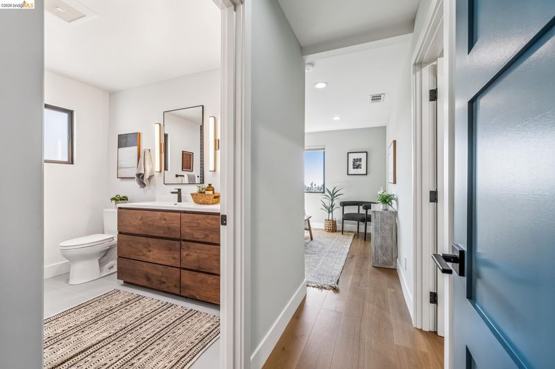 Redwood Heights stunner with Bay views & permitted down-to-the-studs renovation (2022). Main level offers level-in access with 3BD/2BA including a Primary Suite with Bay views, walk-in closet and spacious, luxe bathroom. Updated kitchen opens to dining area and living room. Laundry room completes the floor. The lower level is a legal ADU with the 4th bedroom and 3rd full bath in addition to a large room that opens to a 2nd kitchen and dining area. There is also a second laundry room and several bonus rooms. Upgrades (2022) include new electrical, plumbing, structural reinforcement, roof, dual-pane windows, engineered hardwood floors, Cat-6 wiring throughout & AT&T gigabit fiber. Spacious backyard ready for your vision. Cul-de-sac location in a welcoming community near well-regarded schools (buyer to verify).