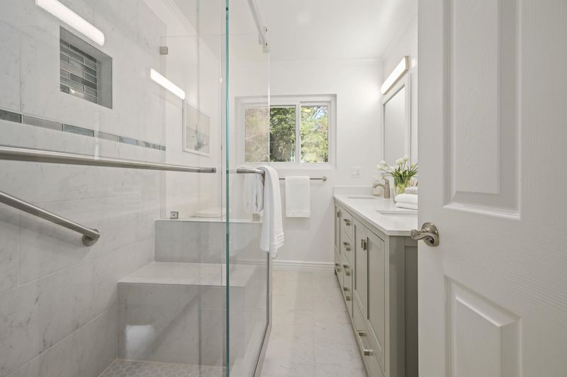 - Stall Shower, Tile, Updated Baths, Double Vanity, Window