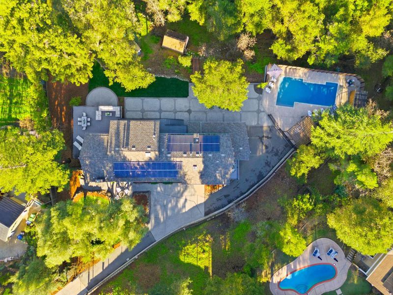 Privately gated and immersed in natural beauty, 108 Teresita Way is a striking estate offering commanding views, exceptional privacy, and effortless access to downtown Los Gatos, top-rated schools, and trails. Designed to maximize light, space, and scenery, this 3,831 sq ft home sits on an expansive 31,200 sq ft lot with multiple decks and patios ideal for entertaining. The formal living and dining room serves as the centerpiece of the home, featuring vaulted ceilings, dramatic walls of glass, fireplace, built-ins, and breathtaking views. A beautifully remodeled chef's kitchen boasts soaring ceilings, oversized island, premium appliances, and picturesque outlooks. The main level includes a luxurious primary suite with private balcony, walk-in closet, and spa-like bath (2022), plus three additional bedrooms, two full baths, and a dedicated office. The lower level offers ideal flexibility with a bedroom, full bath, brand new kitchen (2026), family room with fireplace, and a generous recreation room opening outdoors - perfect for guests or extended living. The wrap-around grounds feature a pool, gazebo, stamped concrete patios, lawn areas, and space for gardens or workshops. A five-car garage, solar, EV hookup, and abundant storage complete this truly special property.
