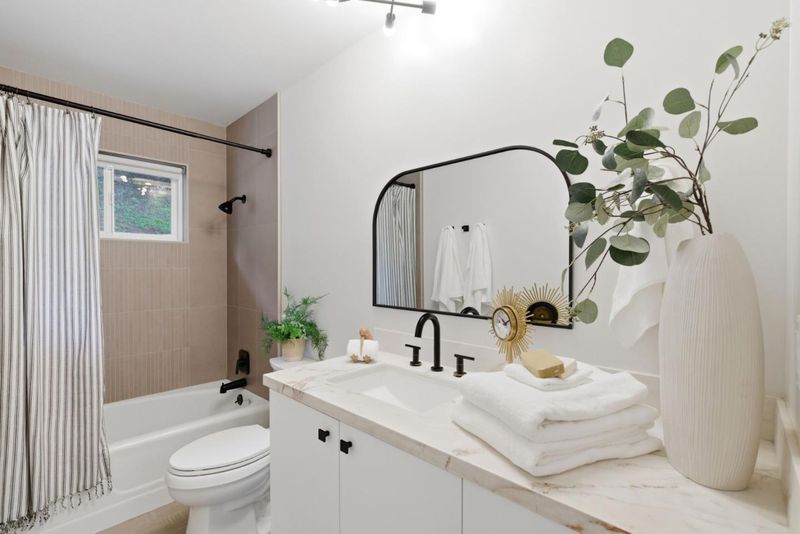 - Double Sinks, Full on Ground Floor, Primary - Oversized Tub, Shower over Tub - 1, Stall Shower, Tile, Tub in Primary Bedroom, Updated Bath