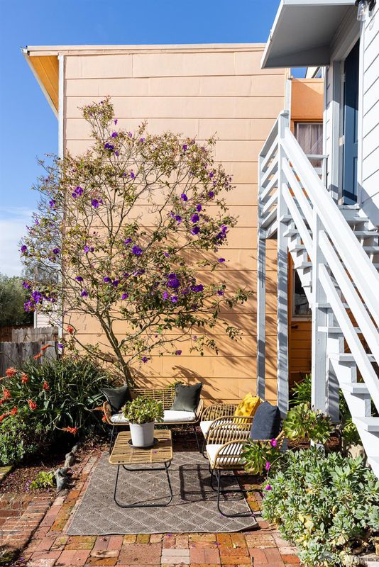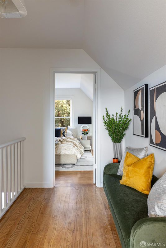 Carefully maintained over generations, 150 College Avenue reflects decades of thoughtful stewardship. Perched on a gentle slope, the home enjoys southern outlooks toward the surrounding hills, while sunlight, balanced proportions, and a south-facing backyard create a setting defined by light, scale, and versatility. The main level offers a well-proportioned living and dining area with comfortable ceiling height and an easy connection to a sunny kitchen. From the kitchen and adjacent sunroom, views extend south toward the hills and upper portion of the backyard. Newer appliances anchor the kitchen, while the sunroom provides direct garden access and houses a newer washer and dryer. A well-sized bedroom and bathroom complete the lower level. Upstairs, spacious bedrooms with ample closet space provide separation and calm, including a south-facing bedroom with elevated hill views. Below, an undeveloped basement with one-car parking offers flexibility for storage, workspace, or future use. Meaningful updates include replacement of knob-and-tube wiring, newer electrical panel and sewer line. Conveniently positioned near public transportation, the Mission and Bernal retail corridors, major freeway access, and the Bernal Cut Path urban trail, this is a rare opportunity to enjoy a well-loved home today with room to thoughtfully evolve over time.